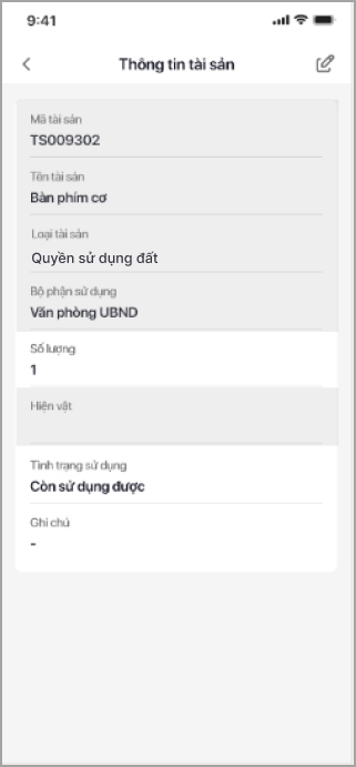 Đối với tài sản là Đất, Nhà thì phần mềm mặc định thông tin Hiện vật để trống nhưng cho phép chỉnh sửa. Đối với tài sản là Vật kiến trúc thì Chỉ tiêu về hiện vật đang lấy lên giá trị Diện tích xây dựng.