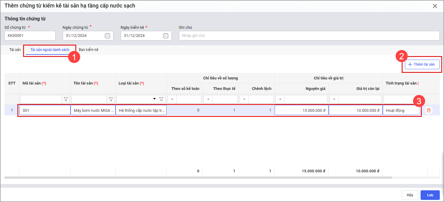 Nếu phát hiện tài sản ngoài danh sách kiểm kê để thêm tài sản đó vào danh sách: