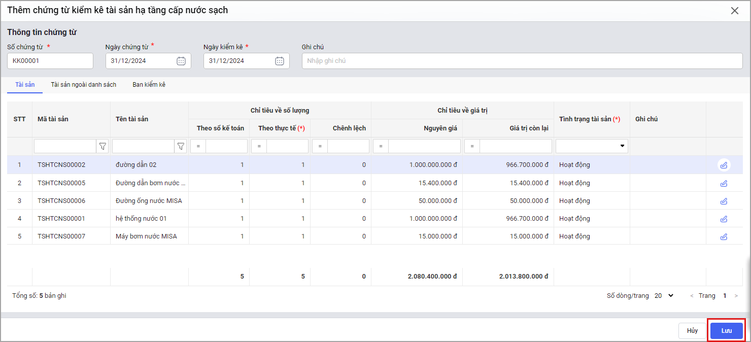 Sau khi anh/chị kiểm kê tài sản thực tế tại đơn vị: