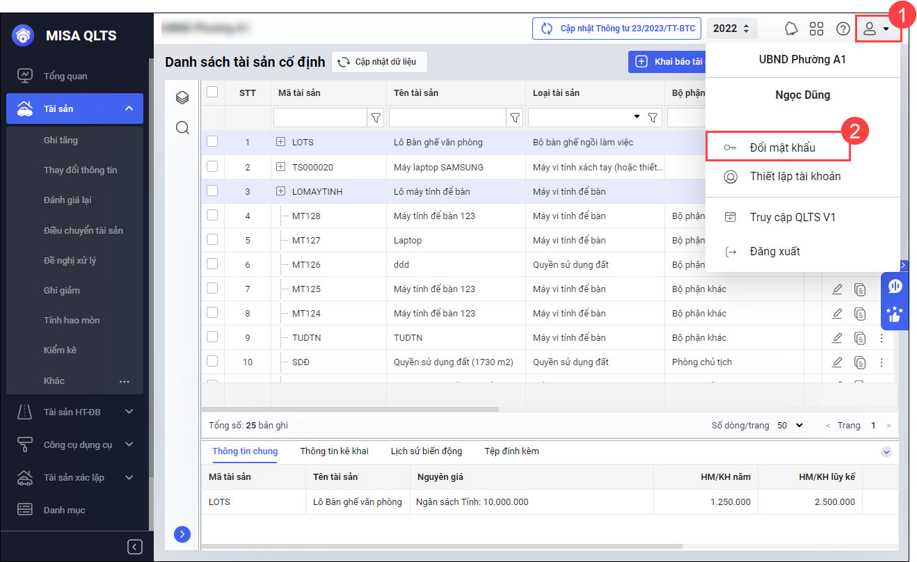 Khi đã đăng nhập được vào phần mềm và muốn đổi mật khẩu, anh/chị thực hiện các bước sau: