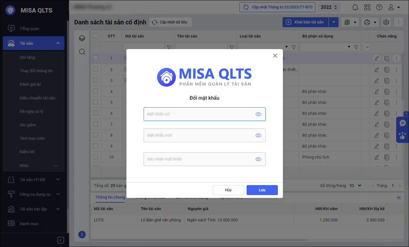 Bước 3: Nhấn Lưu để chương trình cập nhật mật khẩu mới.