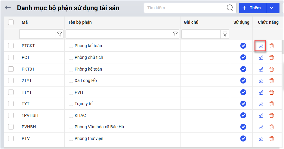 • Tại phòng ban cần ngừng theo dõi, nhấn biểu tượng cây bút để sửa.