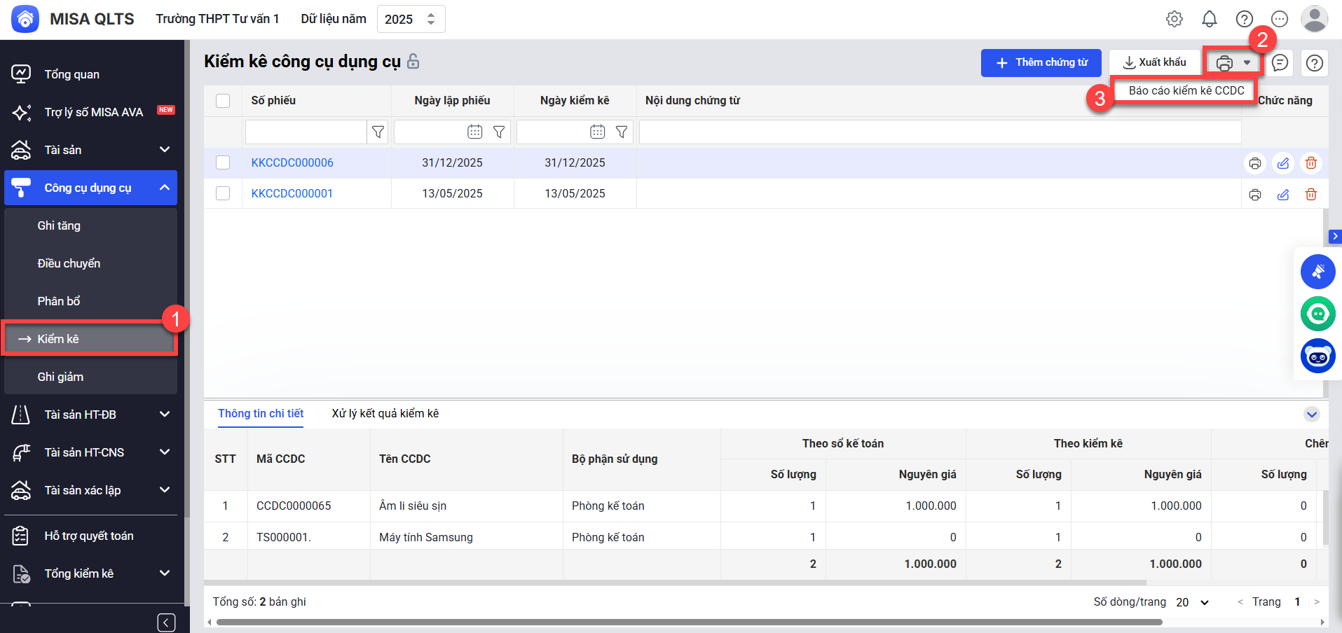 2.1. In biên bản kiểm kê công cụ dụng cụ