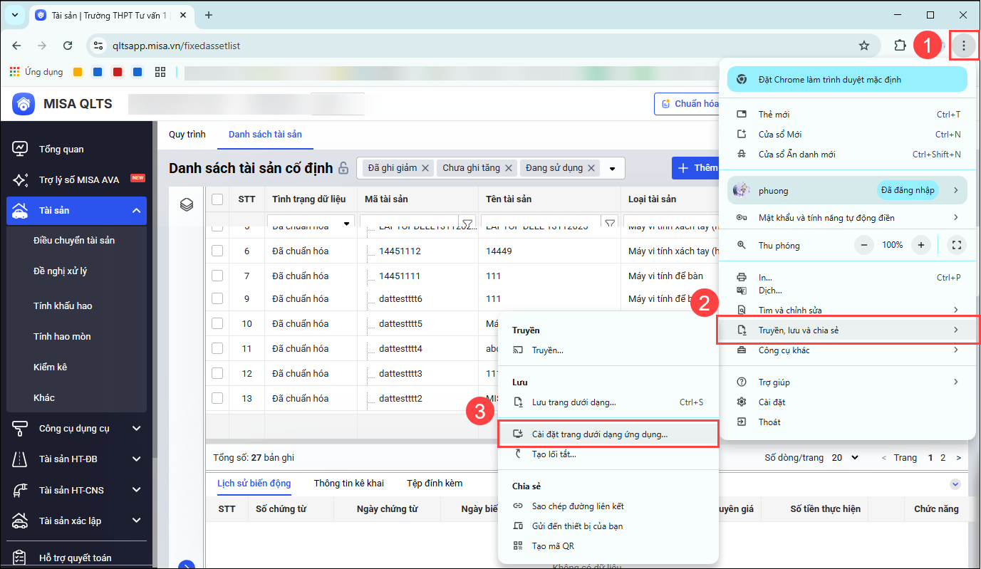 - Chọn tiếp Cài đặt trang dưới dạng ứng dụng.