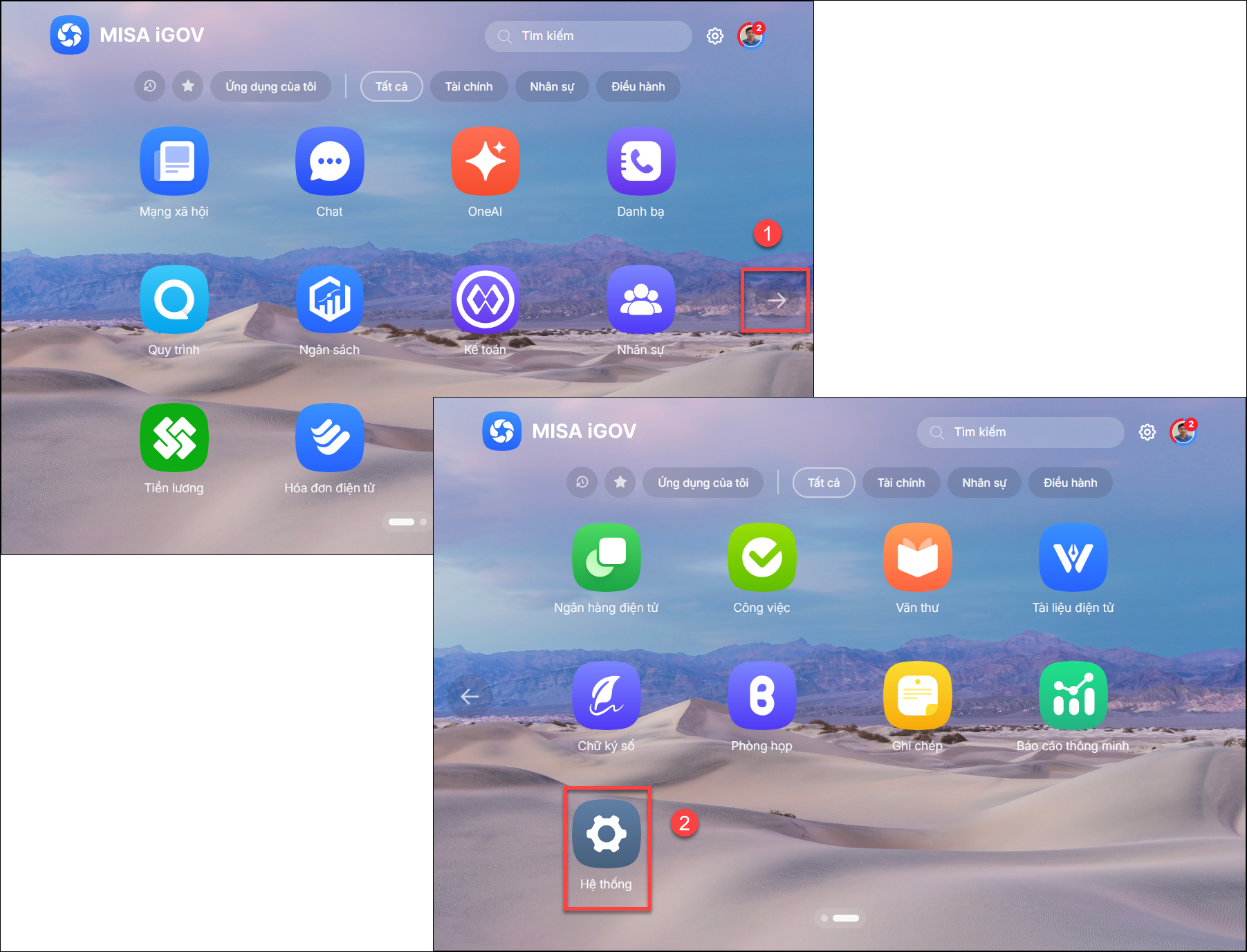 Bước 1: Đăng nhập vào hệ thống MISA iGOV bằng tài khoản quản trị hệ thống (ADMIN)