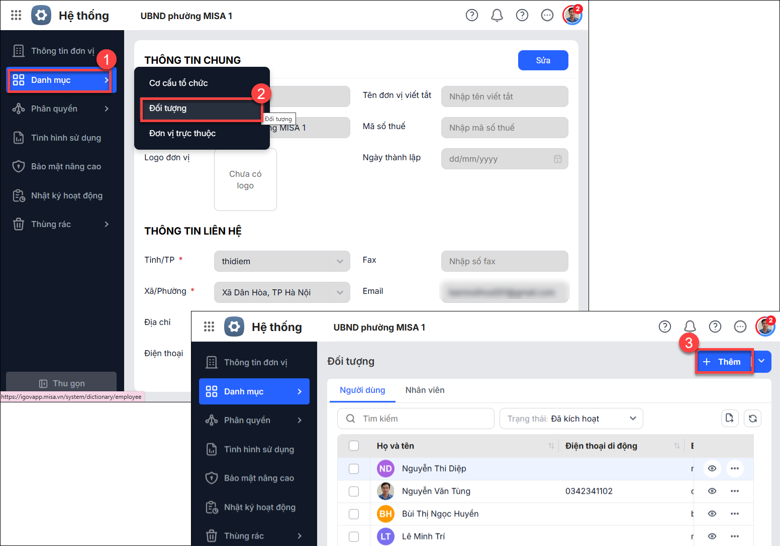 Bước 3: Trong ứng dụng Hệ thống, anh/chị vào Danh mục\Đối tượng\ nhấn Thêm.