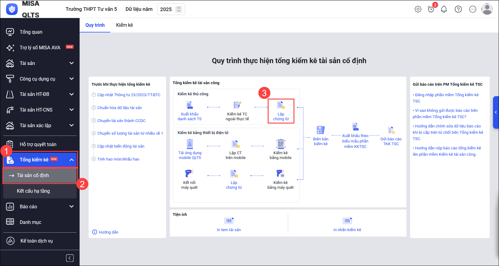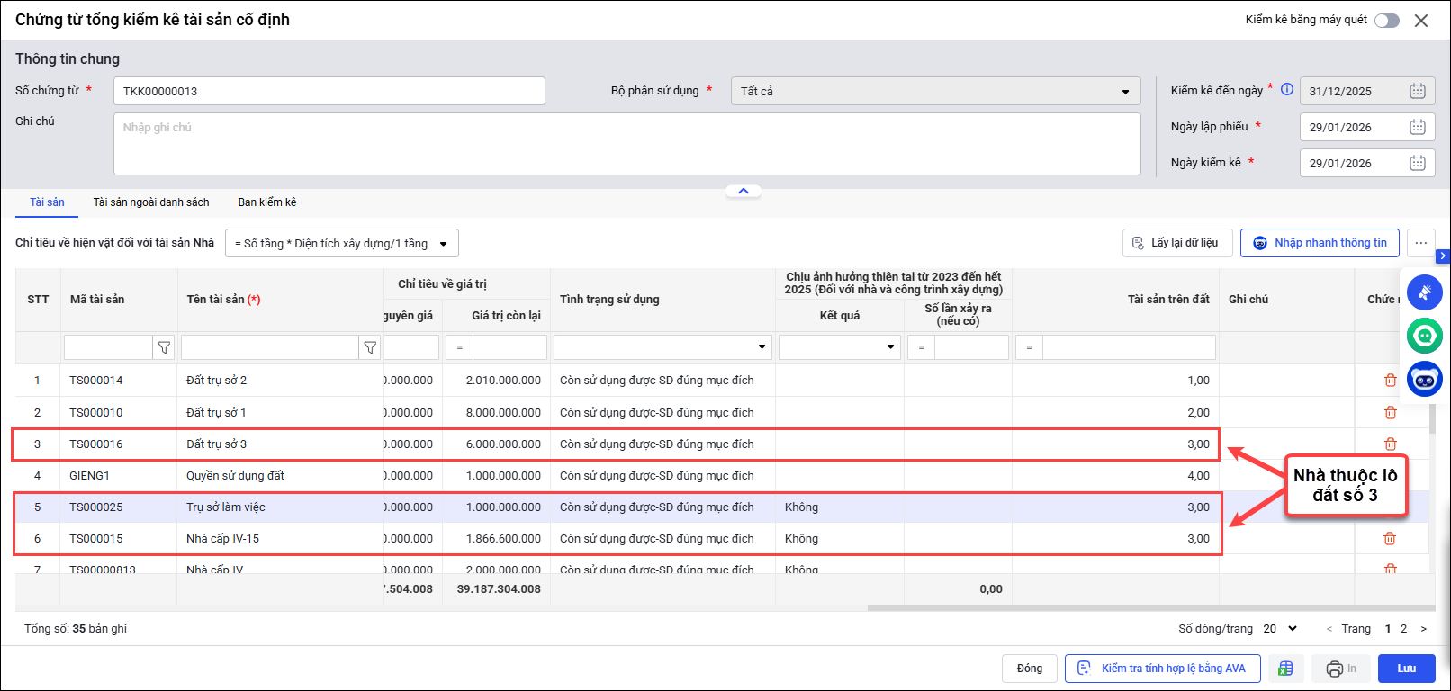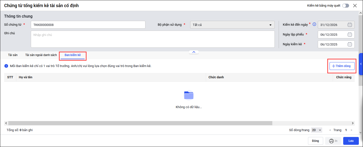 - Bước 2: Lập chứng từ tổng kiểm kê TSC