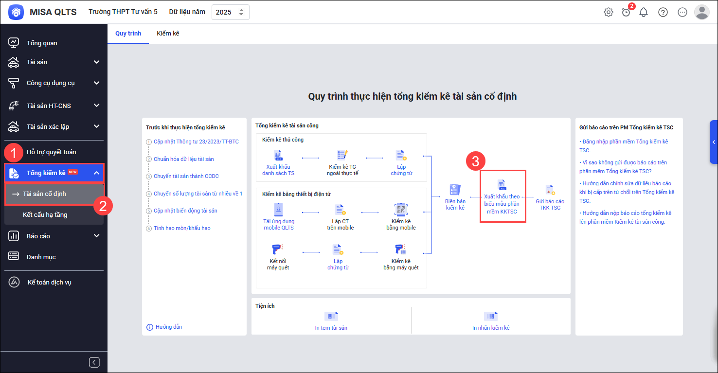 - Bước 3: Xuất khẩu kết quả tổng kiểm kê và nhập khẩu lên phần mềm TKKTSC