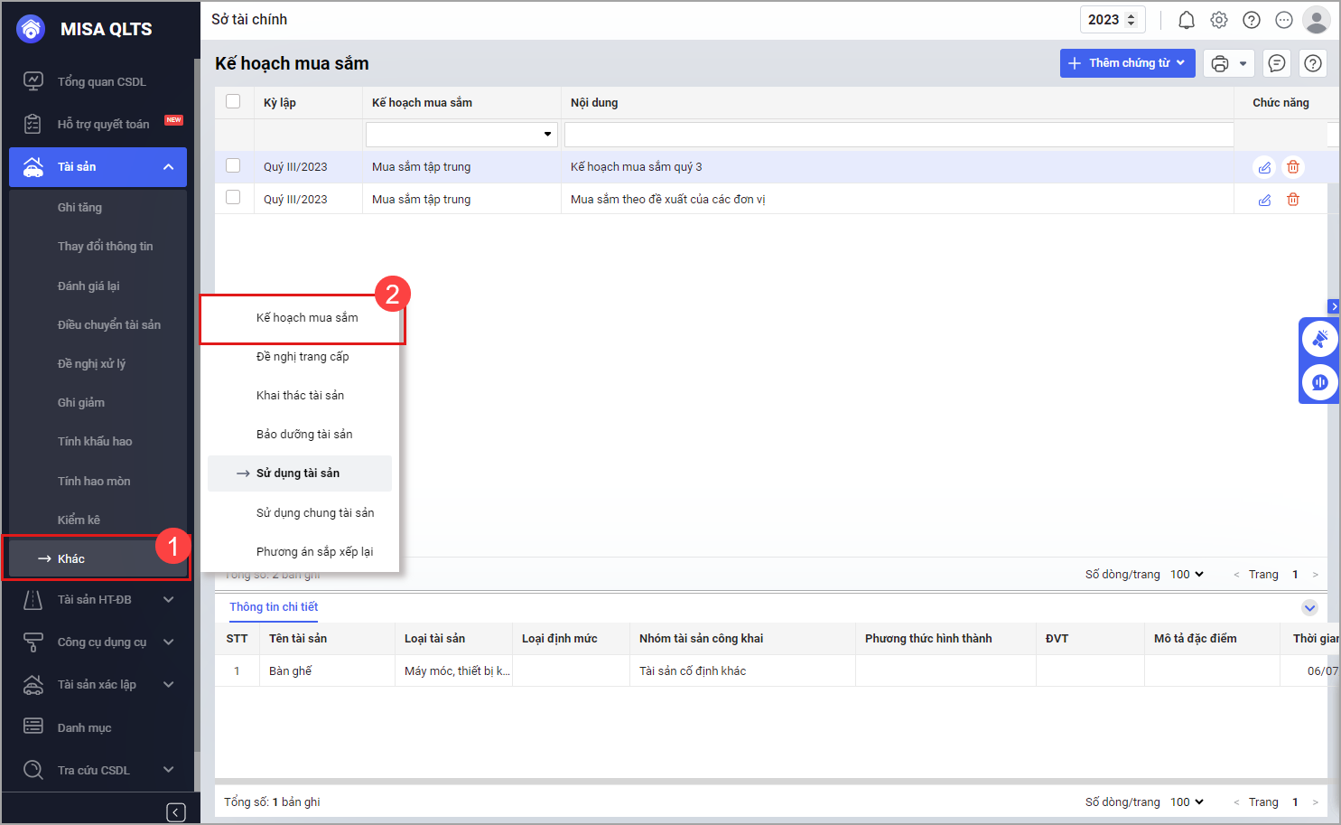 Bước 1. Vào Tài sản\Khác\Kế hoạch mua sắm.