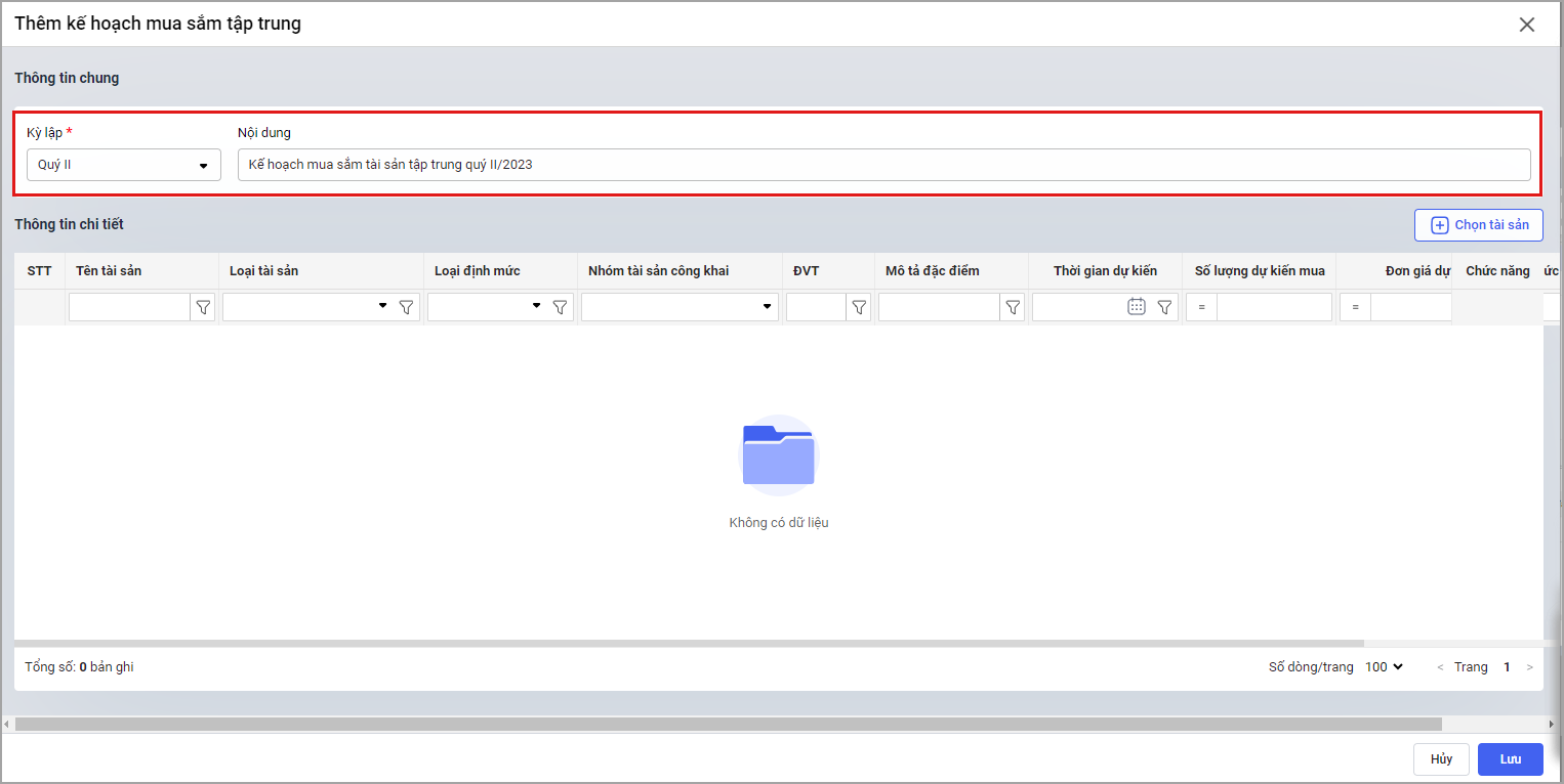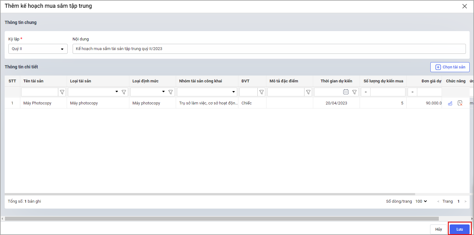 Bước 5. Nhấn Lưu để thêm kế hoạch mua sắm tập trung.