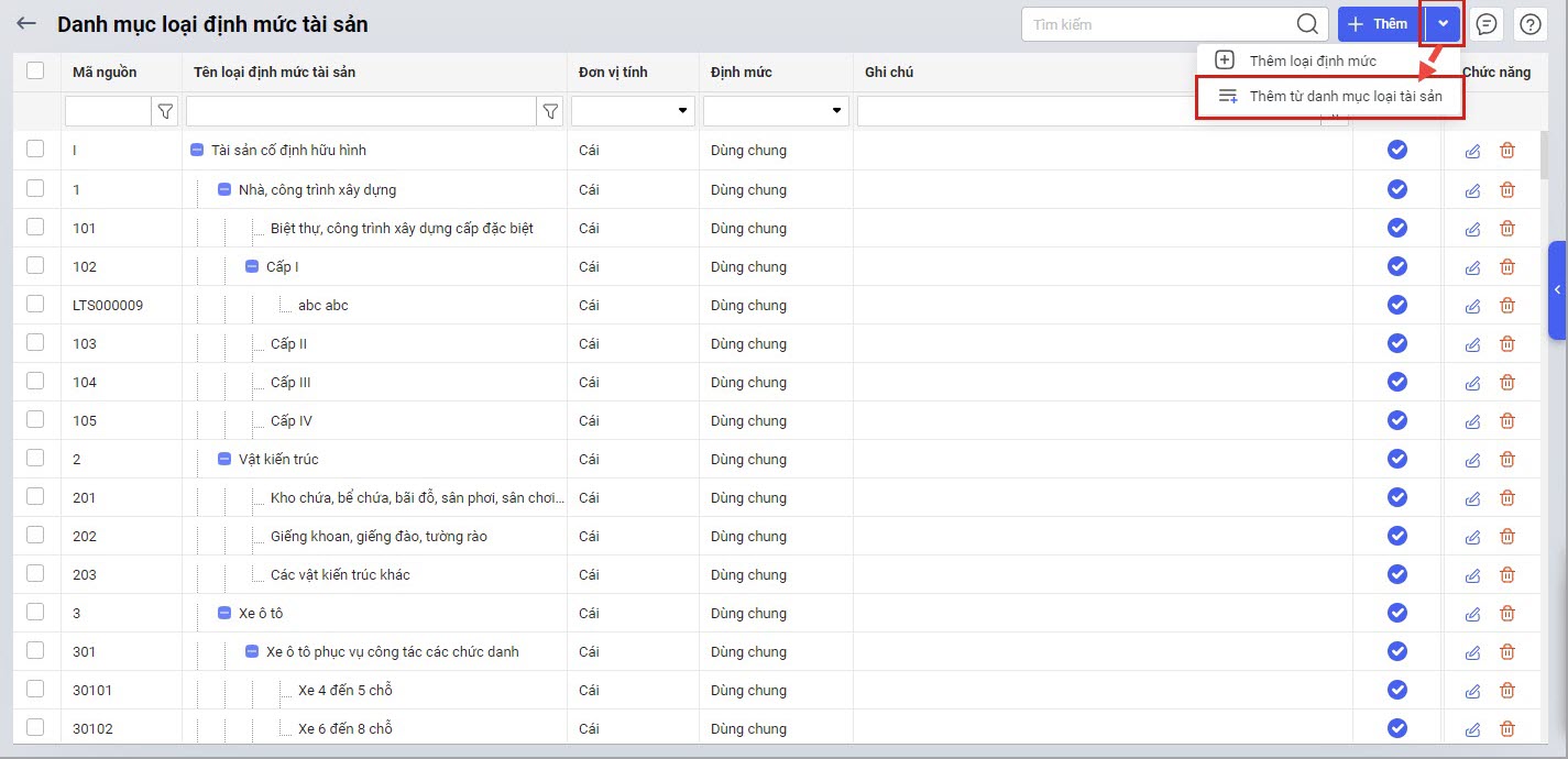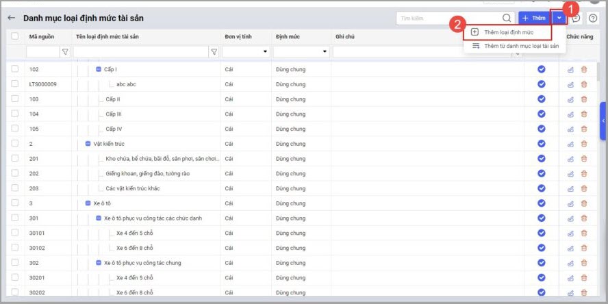 2.1. Thêm định mức từ danh mục loại tài sản