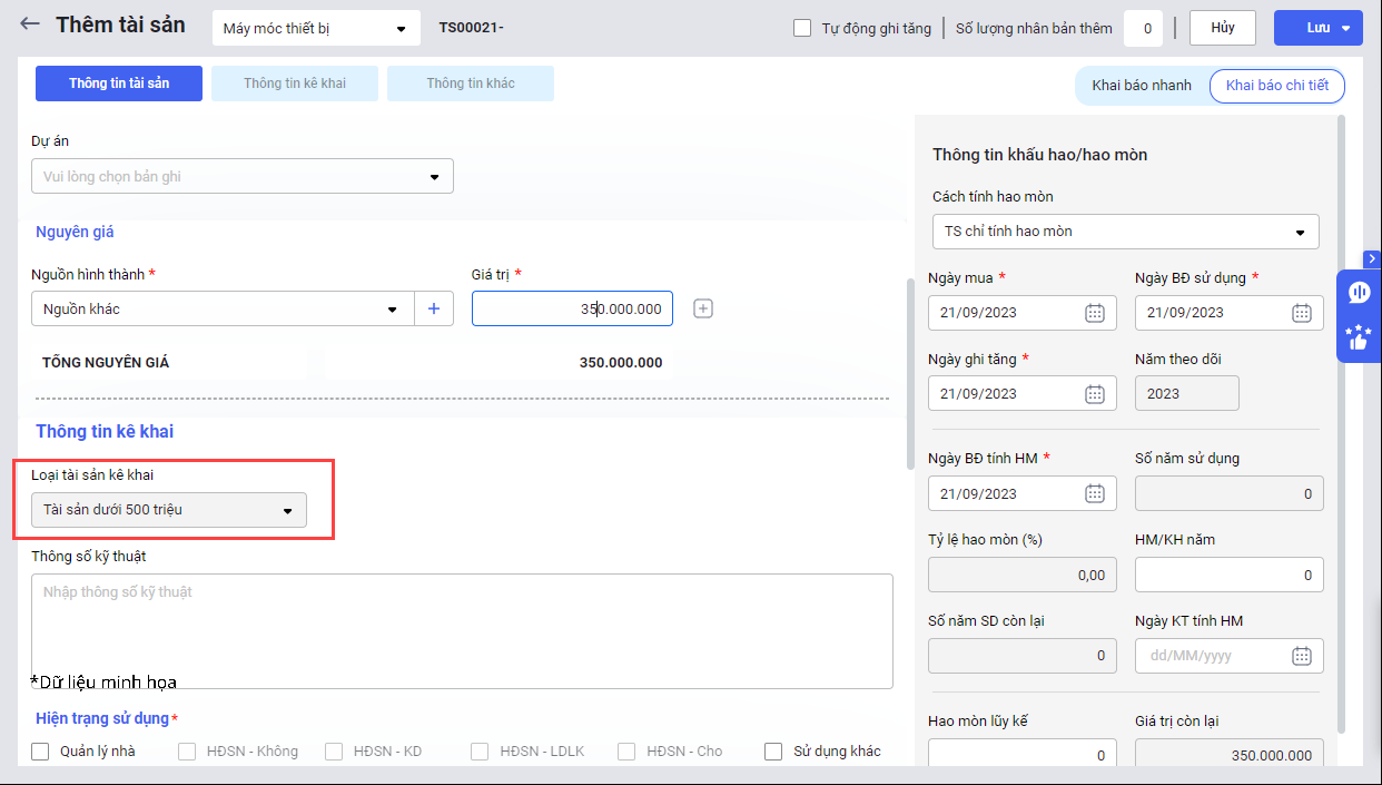 • Không kê khai cho các tài sản ghi tăng từ những năm trước vì mặc định các tài sản đã được kê khai từ khi mua tài sản.
