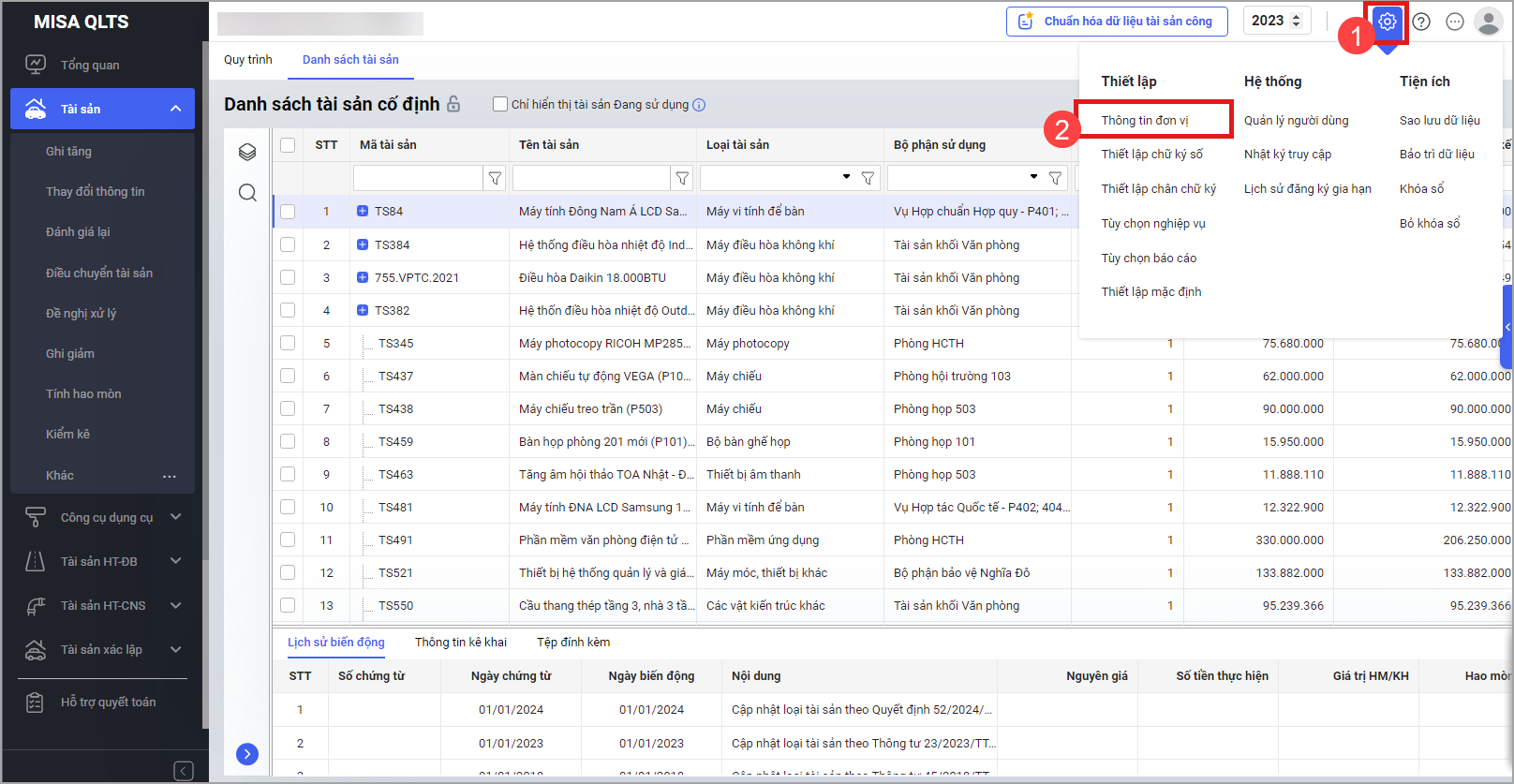 Bước 1: Vào Thiết lập\Thông tin đơn vị.
