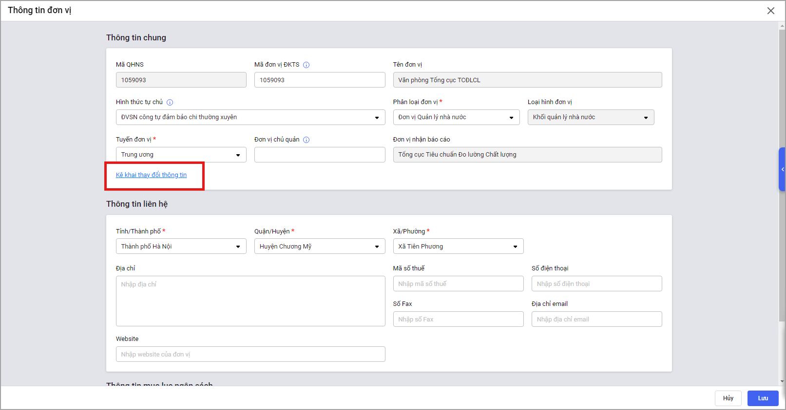 • Nội dung: Nhập nội dung lý do cần thay đổi thông tin đơn vị