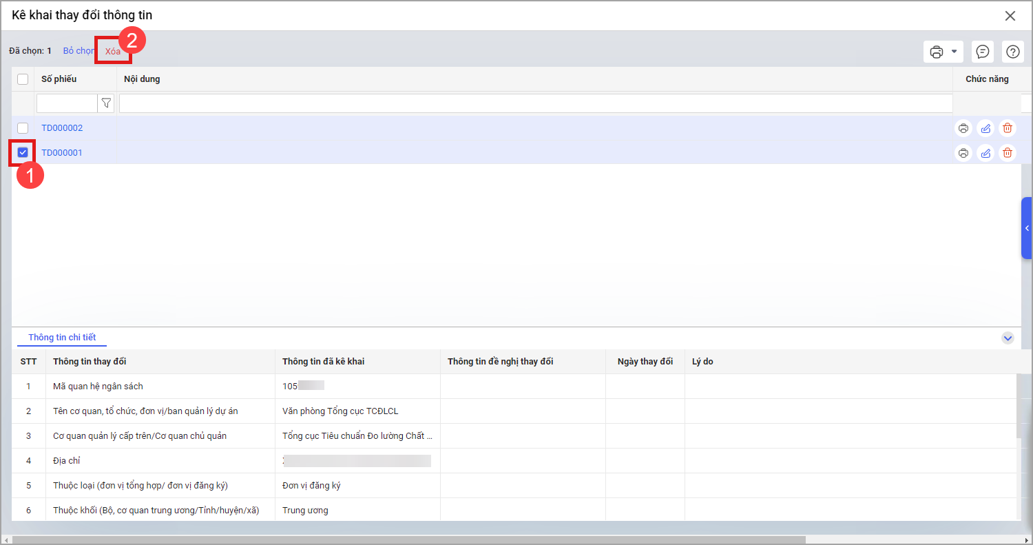 • Nhấn vào biểu tượng thùng rác để xóa phiếu hoặc tích chọn các phiếu cần xóa.