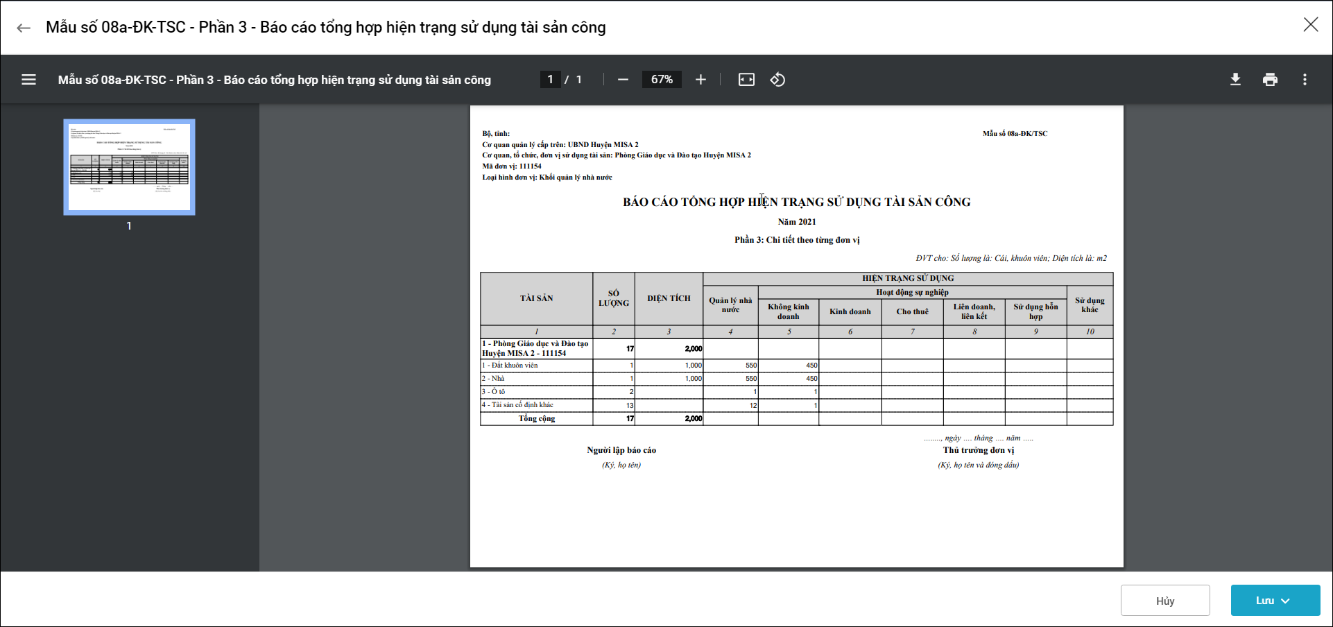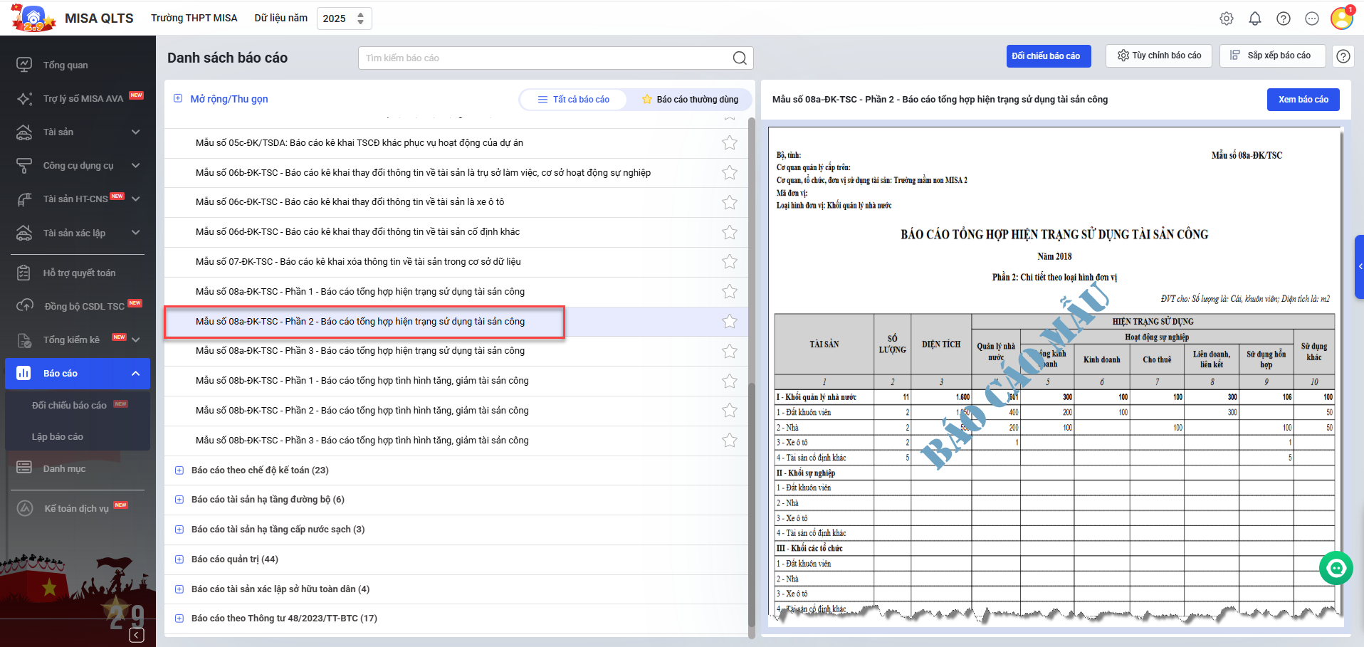 Bài viết giới thiệu tính năng mới giúp Anh/chị in được Mẫu số 08a-ĐK-TSC – Phần 2 – Báo cáo tổng hợp hiện trạng sử dụng tài sản công (mẫu 08a phần 2).