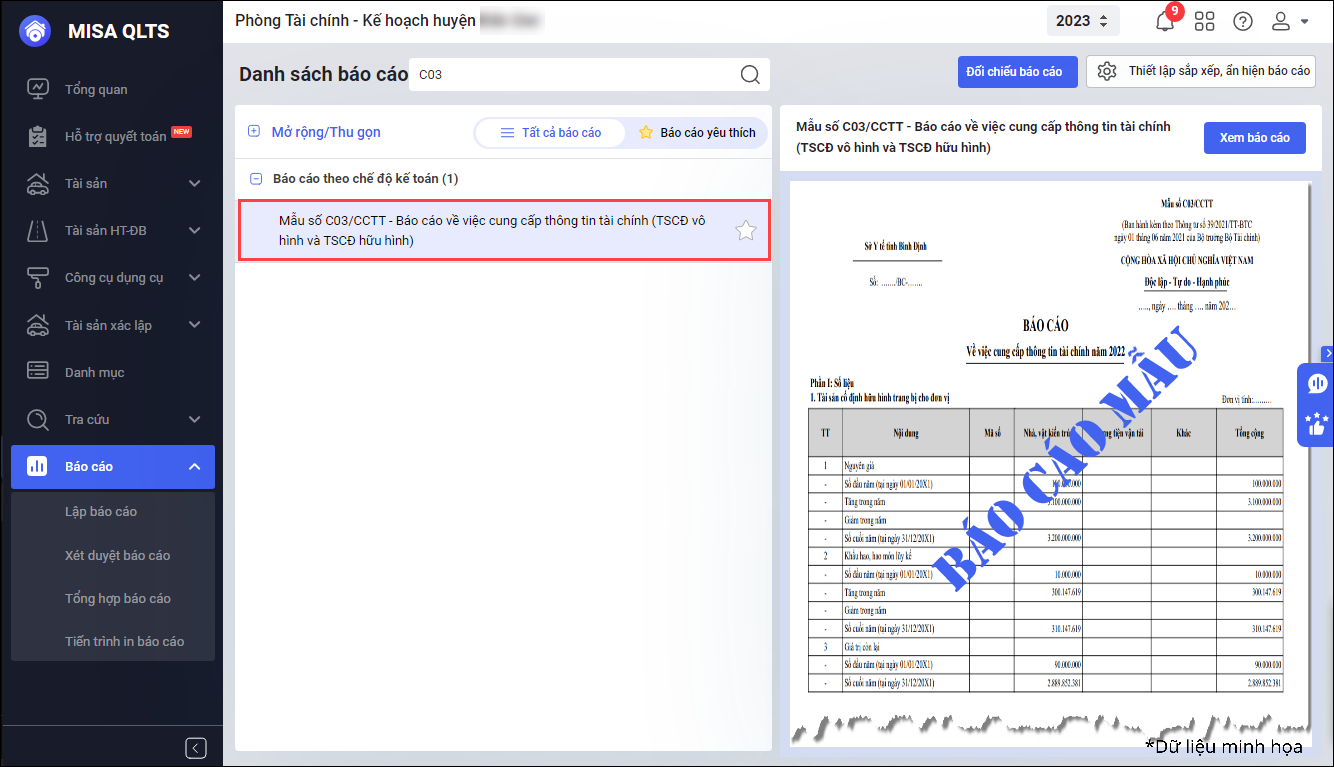 Trong bài viết, anh/chị sẽ biết vào đâu để in báo cáo C03/CCTT, cách thiết lập tham số và xem chi tiết số liệu từng tài sản theo đúng quy định.