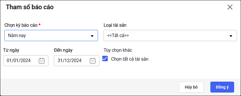 • Ô tham số Kỳ báo cáo hỗ trợ nhiều lựa chọn: chọn nhanh theo tháng, quý, năm hoặc tự xác định kỳ báo cáo bằng cách nhập “Từ ngày – Đến ngày”.
