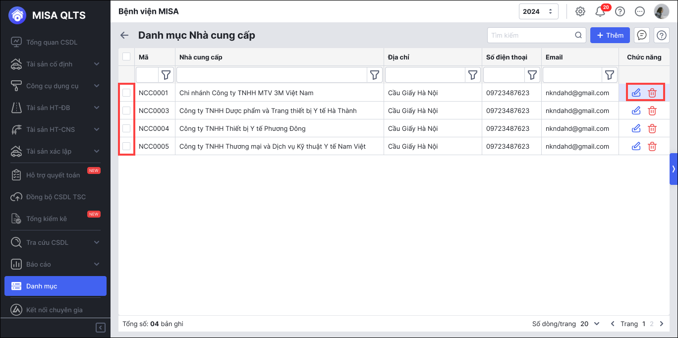 2.2. Sửa/Xóa Nhà cung cấp