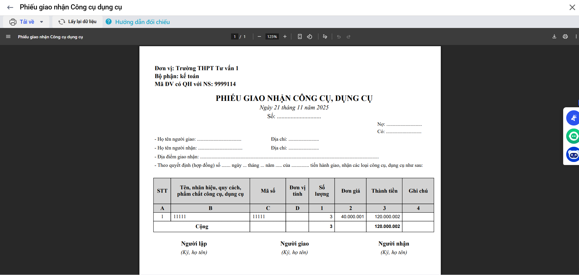 Bài viết hướng dẫn cách in phiếu giao nhận công cụ dụng cụ nhằm hỗ trợ quản lý và bàn giao CCDC theo quy định.