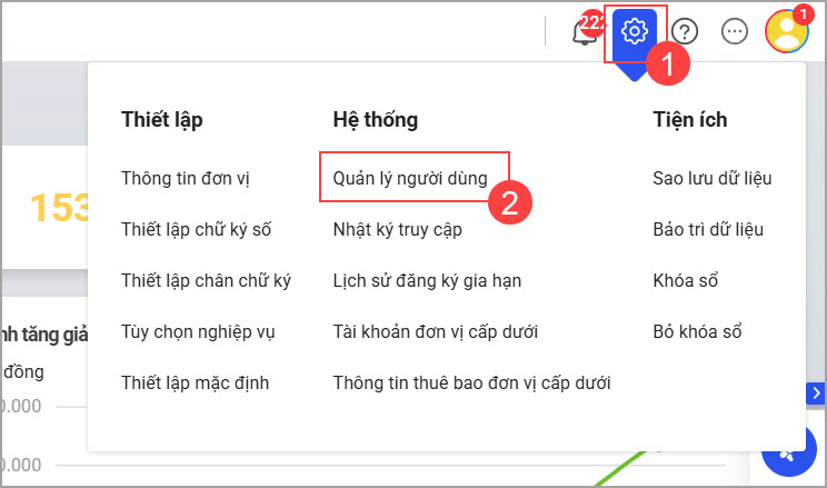 - Nhấn vào biểu tượng Bánh răng\Hệ thống\Quản lý người dùng.