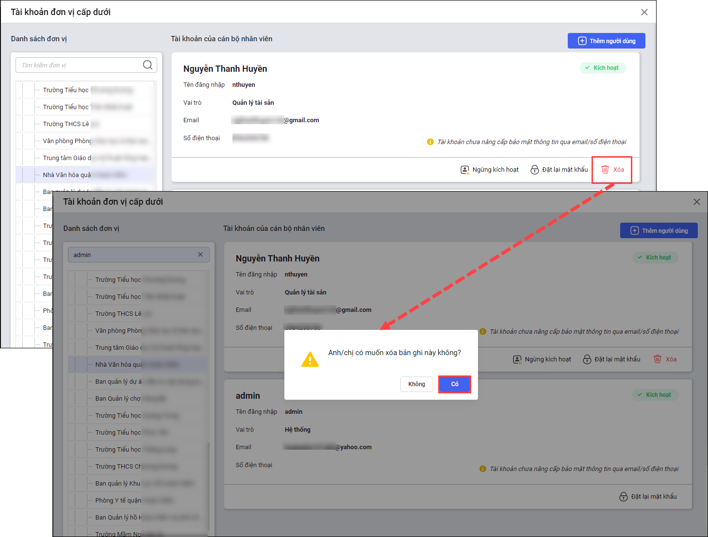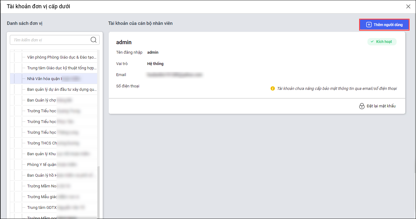 2.1. Thêm tài khoản người dùng tại đơn vị cấp dưới