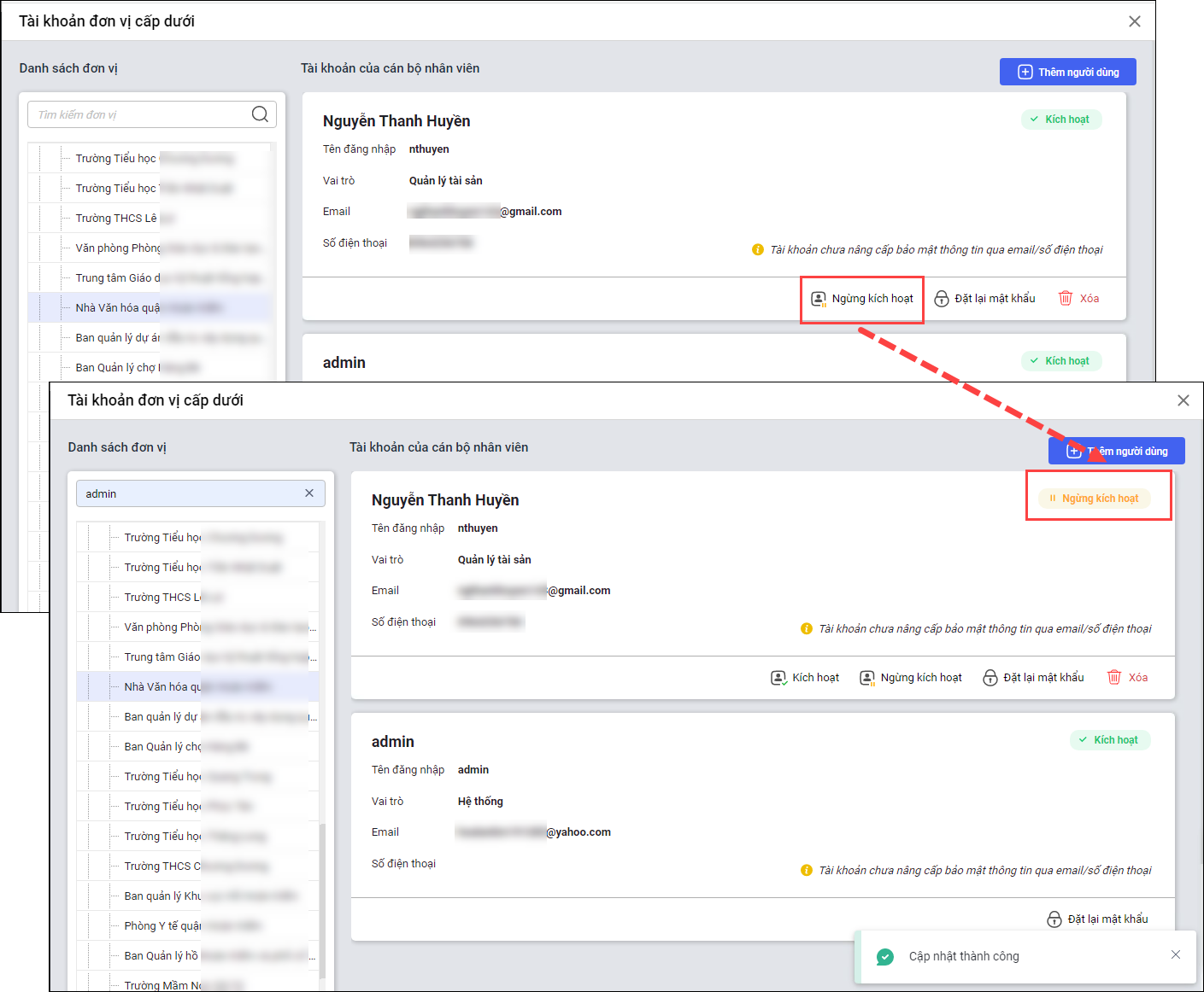 - Kích hoạt/Ngừng kích hoạt tài khoản.