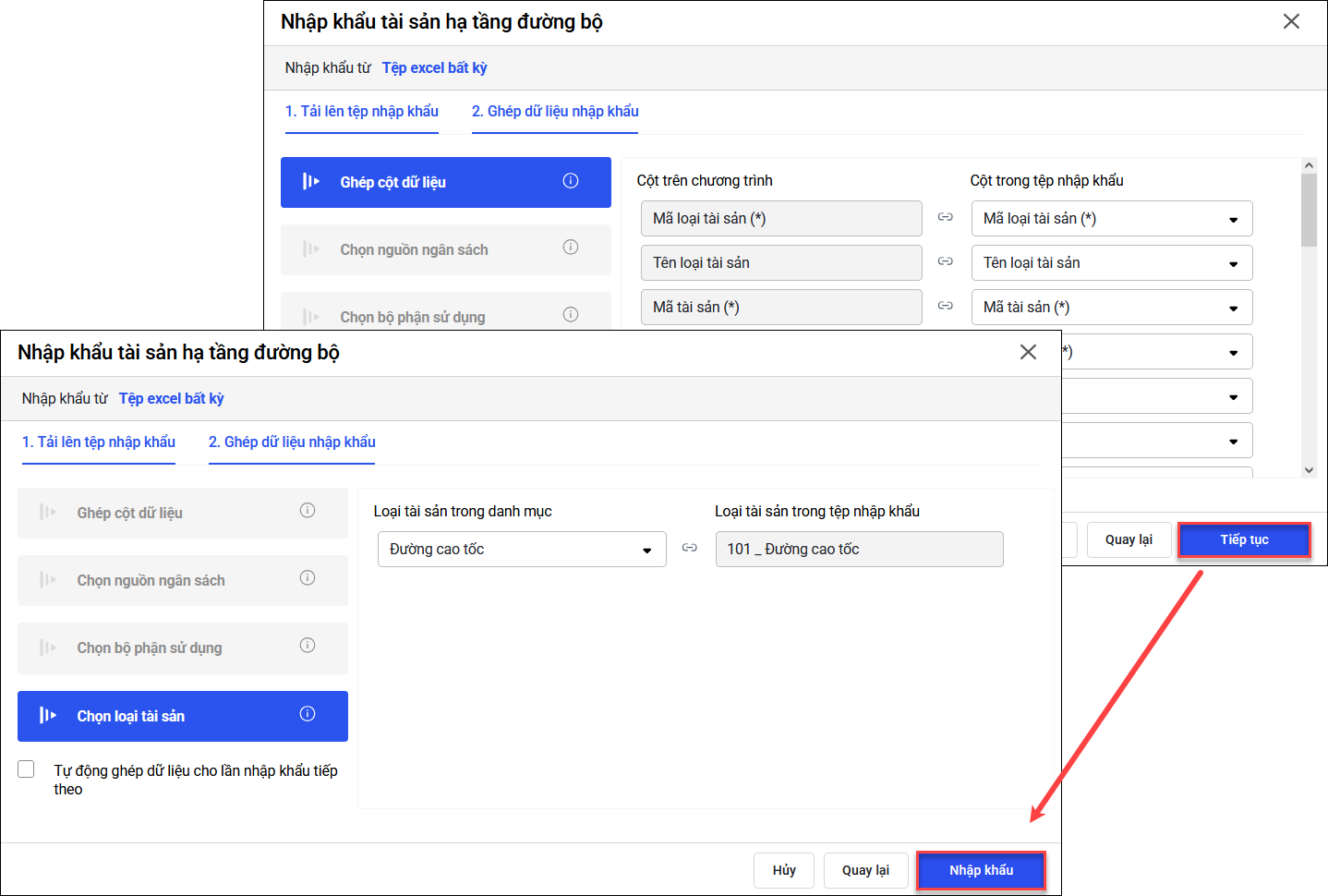 4. Quy trình nhập khẩu tài sản HT-ĐB bằng excel từ đơn vị cũ sang đơn vị mới sáp nhập