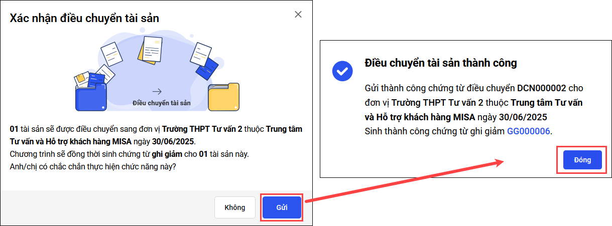 Bài viết này hướng dẫn anh chị lập và gửi chứng từ điều chuyển tài sản cố định cho một đơn vị khác cùng sử dụng phần mềm iGov Tài sản/QLTS, tự động hóa quy trình bàn giao, giúp hai bên theo dõi trạng thái tiếp nhận (chấp nhận hoặc từ chối) một cách minh bạch.