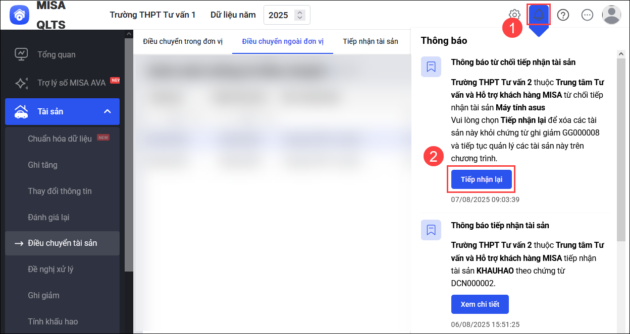 Để thực hiện điều chuyển tài sản qua đơn vị mới có sử dụng phần mềm iGov Tài sản/QLTS, đơn vị thực hiện các bước sau: