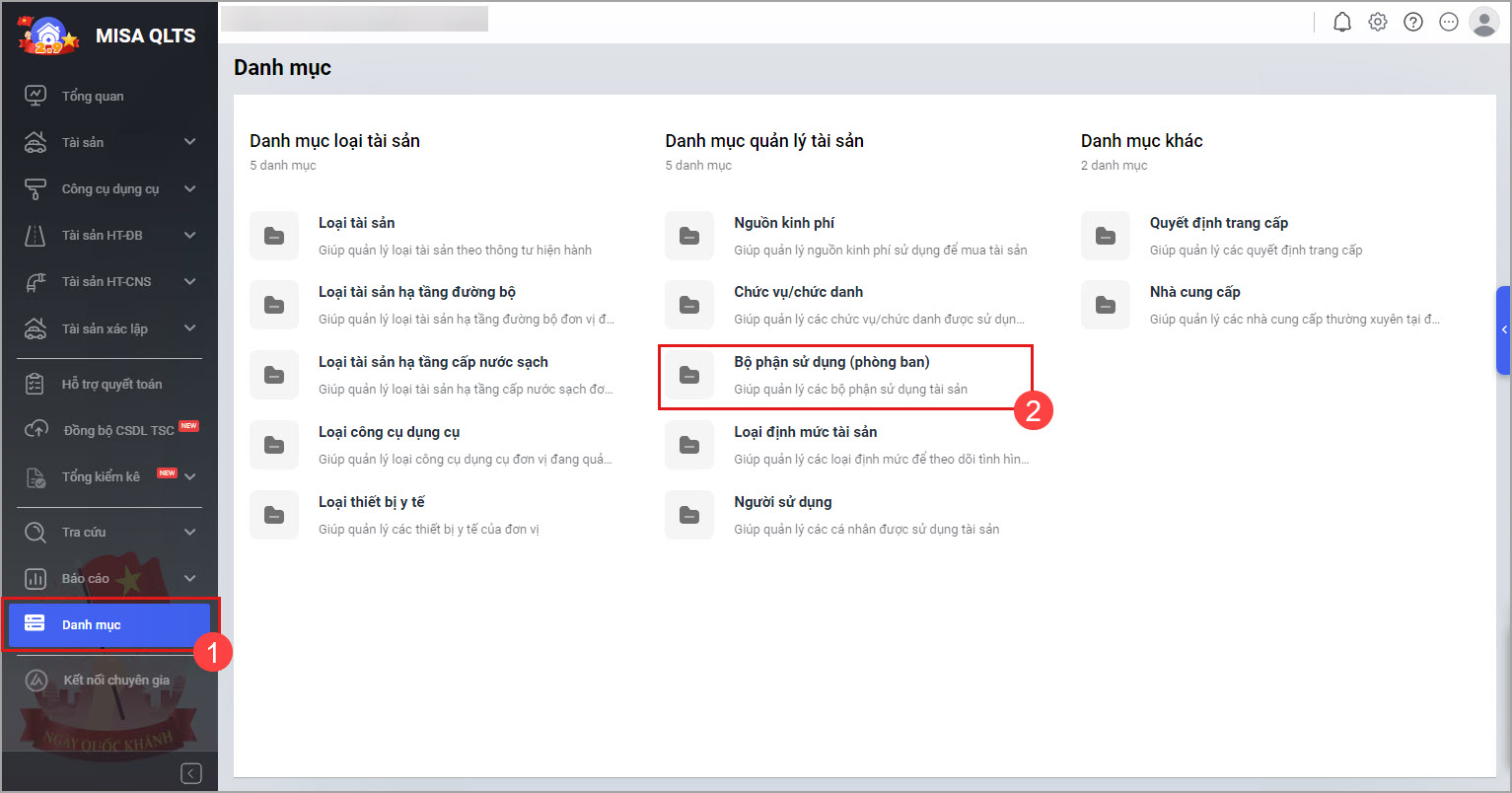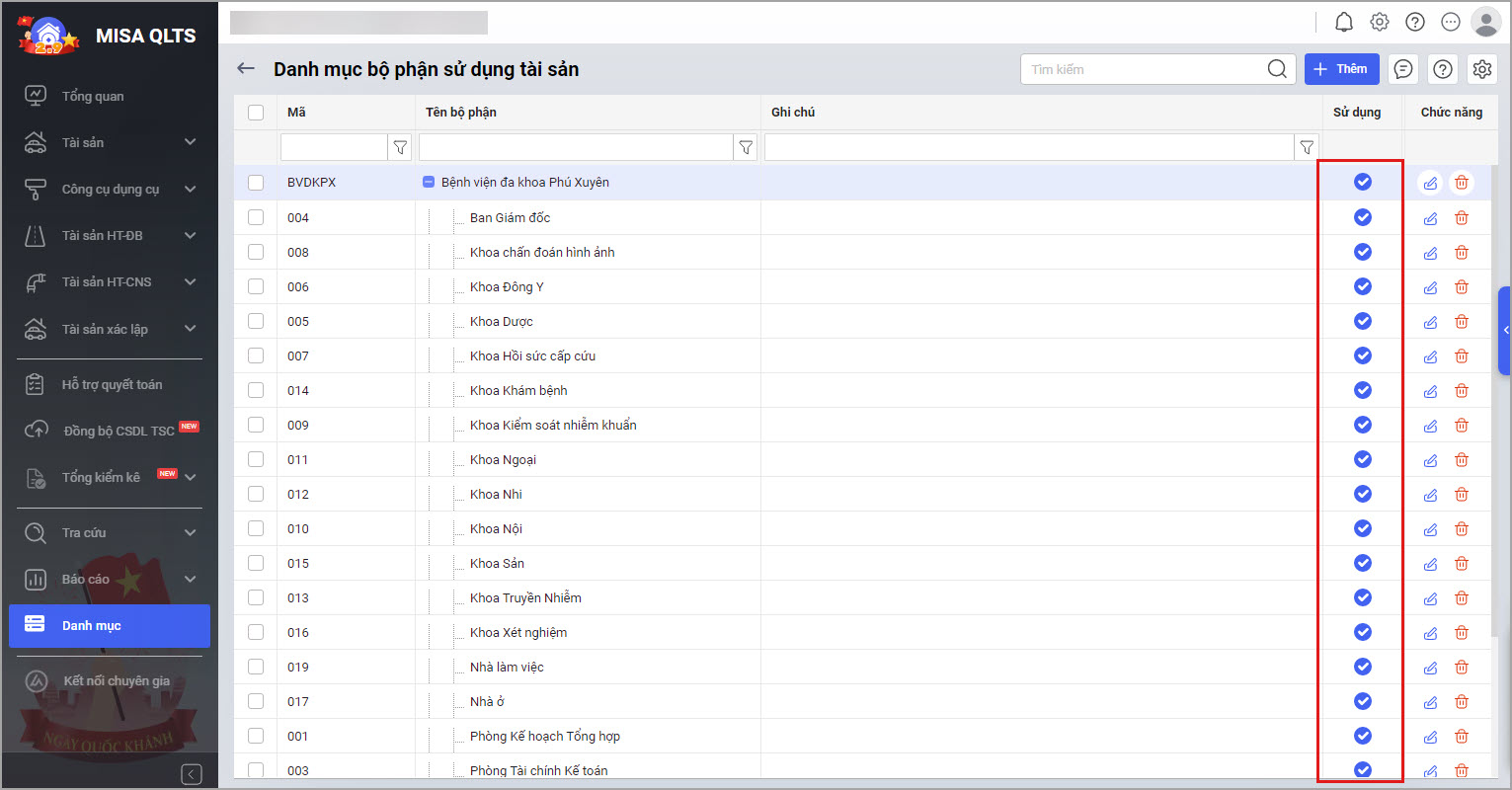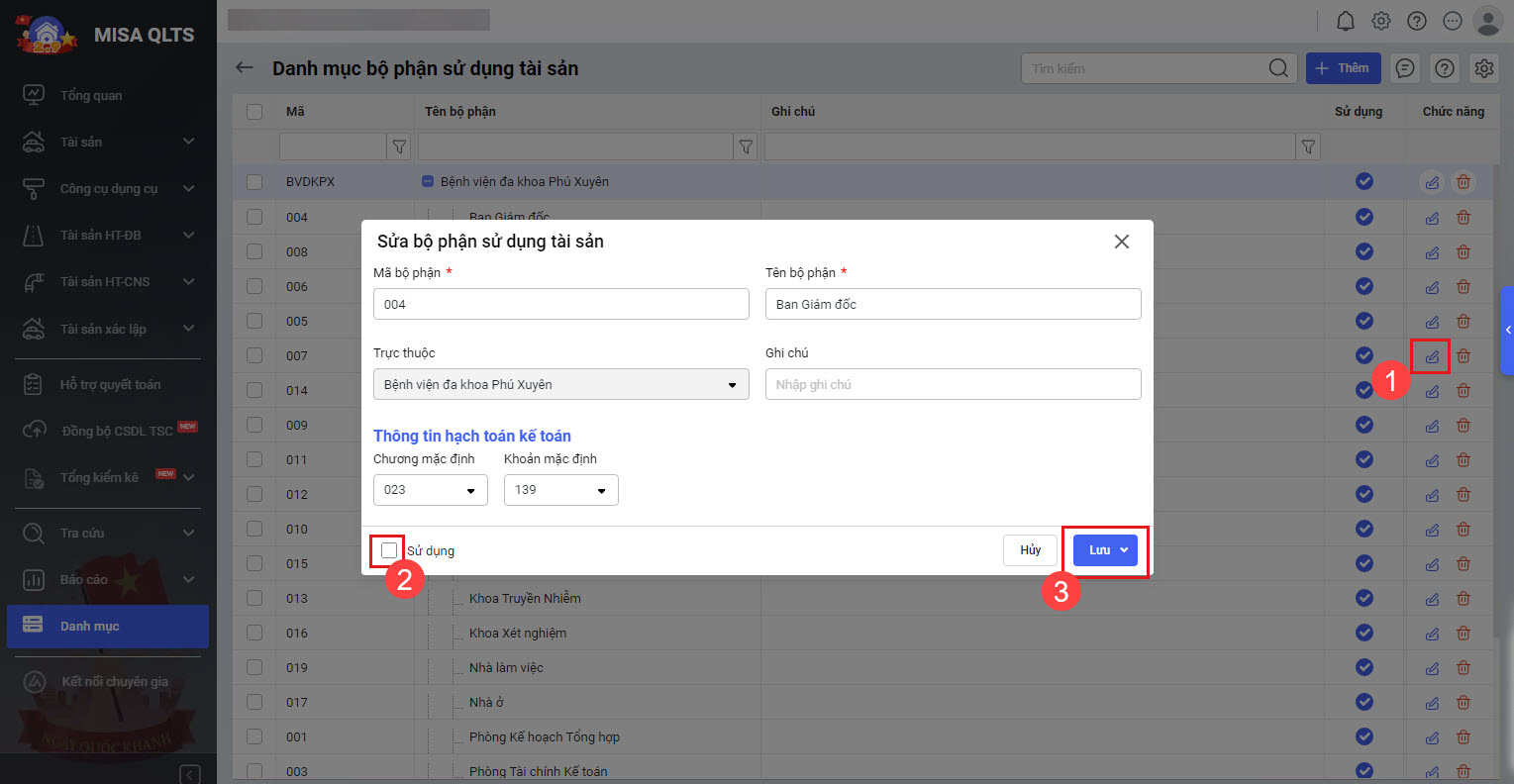- Bổ sung thêm chức năng sử dụng danh mục bộ phận sử dụng.