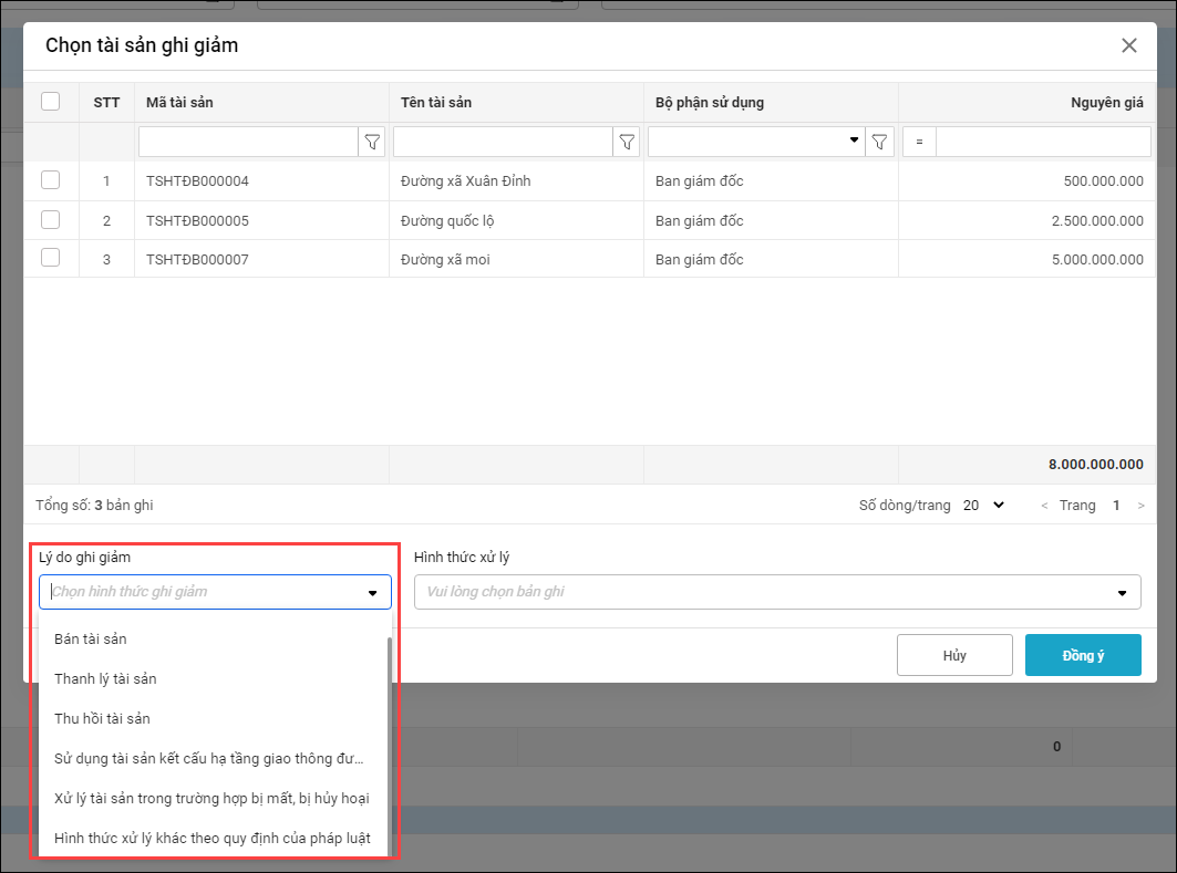 – Hiện nay, trường thông tin “Hình thức ghi giảm” đổi thành “Lý do ghi giảm” và cập nhật danh mục mới phù hợp với quy định. Trường “Lý do ghi giảm” đổi thành “Hình thức xử lý”, cán bộ QLTS điền thông tin trường này theo hình thức xử lý thực tế.