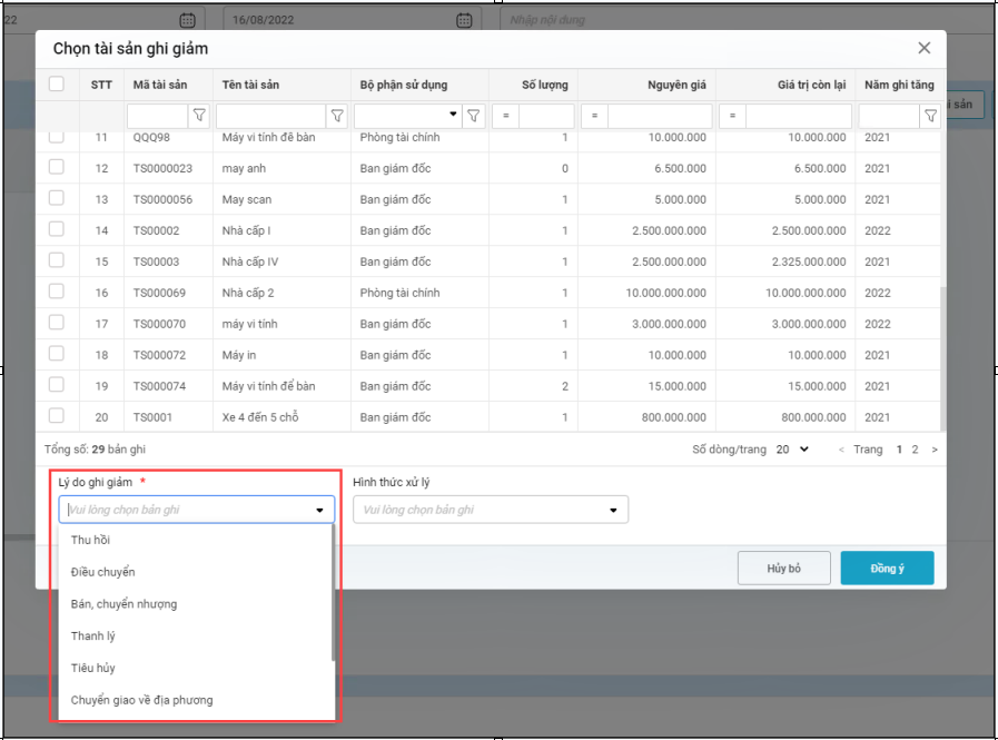 - Thanh lý tài sản