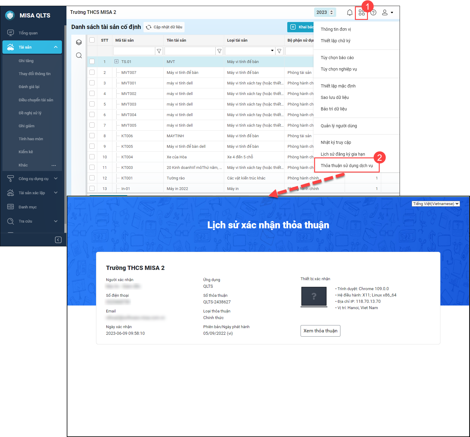 Mục đích: Giúp xem lại thỏa thuận sử dụng dịch vụ tại đơn vị.