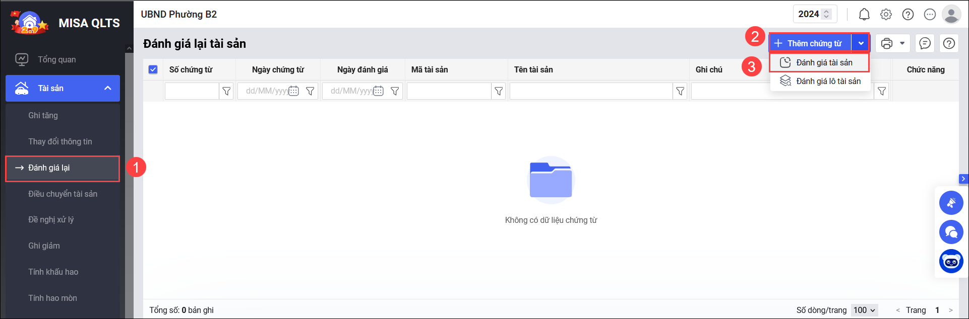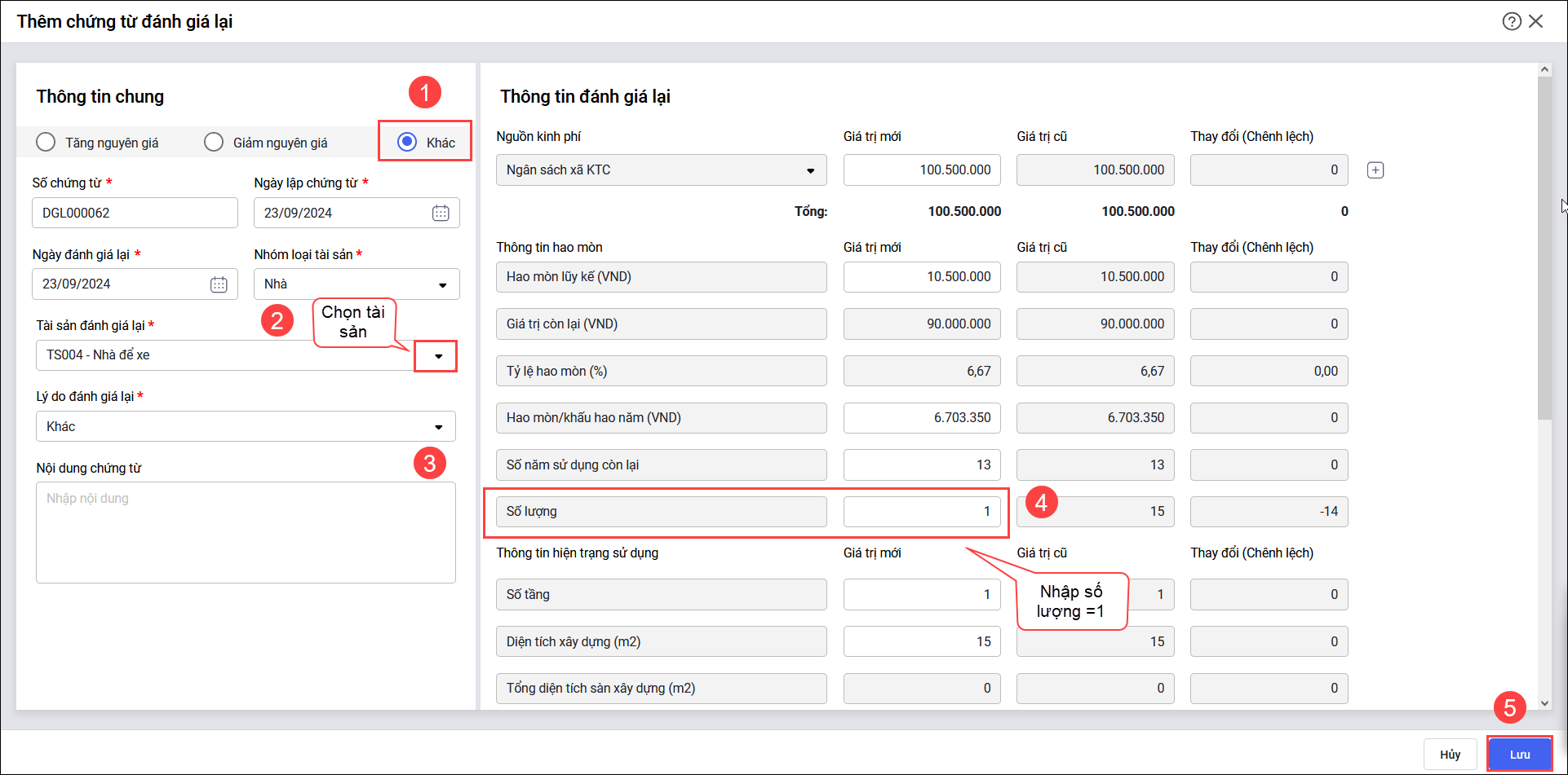 Bài viết này giúp anh/chị thực hiện đánh giá lại về số lượng tài sản Đất, Nhà = 1 để ghi nhận chính xác tình trạng từng tài sản.