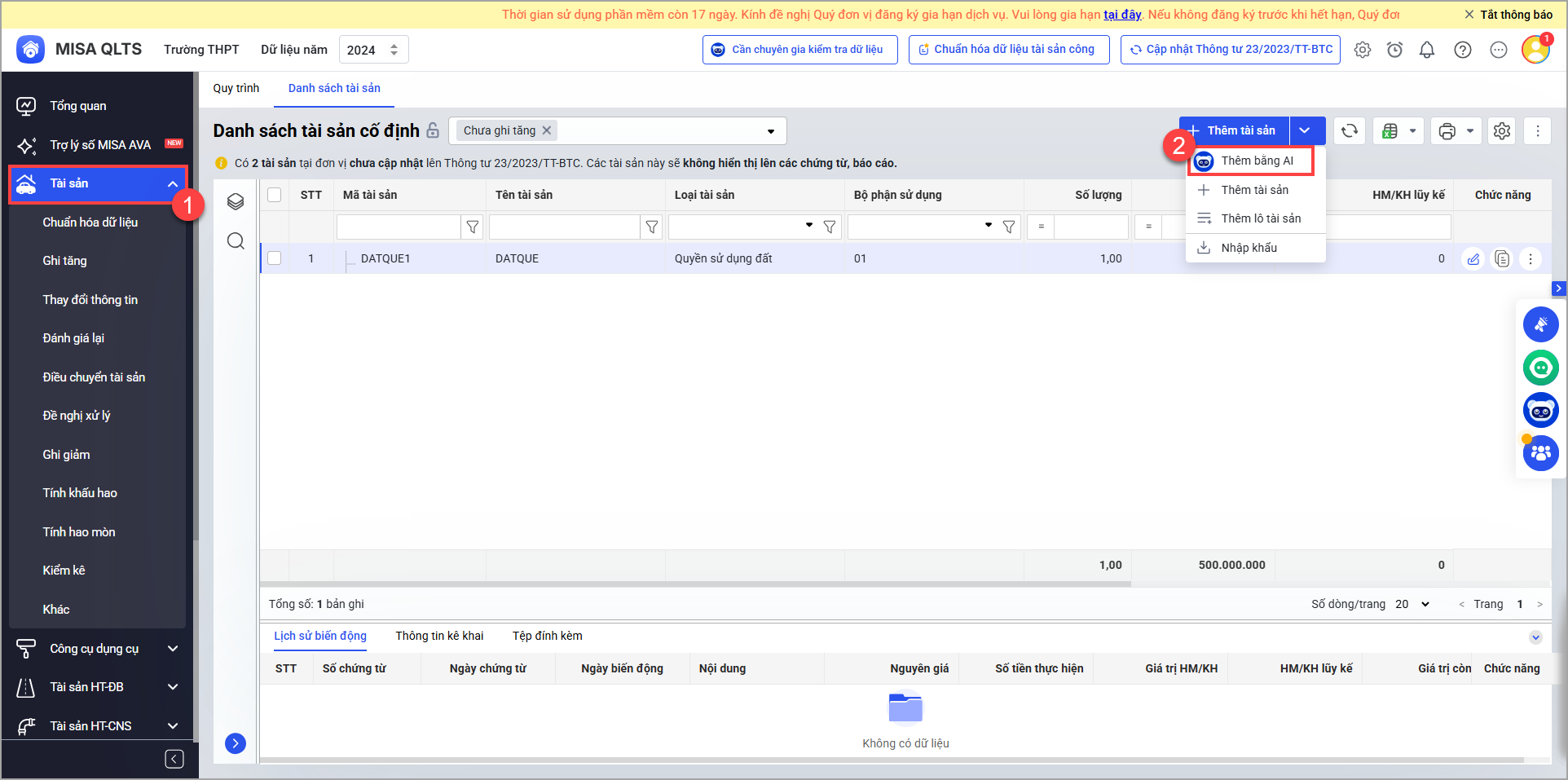 1. Vào Tài sản/Thêm tài sản, chọn Thêm bằng AI
