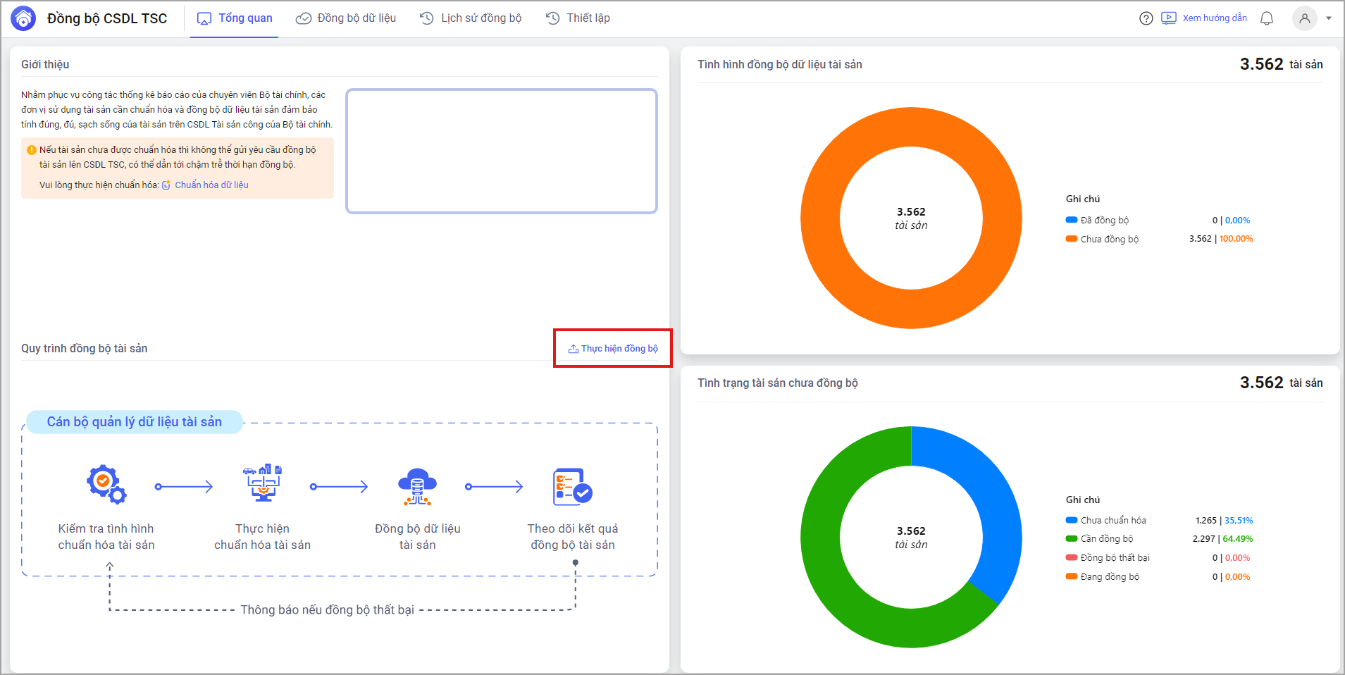 Bước 1: Theo dõi tổng quan tình hình đồng bộ dữ liệu của đơn vị