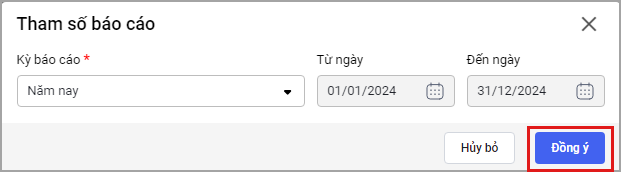 Bước 4: Chọn Tham số báo cáo, nhấn Đồng ý để xem báo cáo.