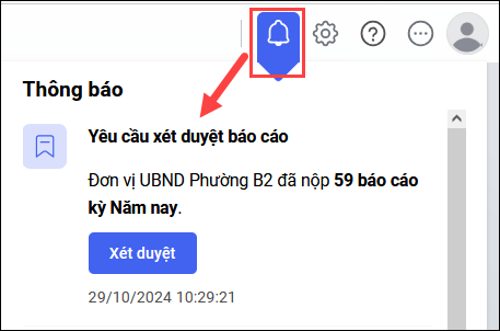 Bước 1: Tại đơn vị cấp trên, khi có đơn vị cấp dưới nộp báo cáo, anh/chị sẽ nhận được thông báo.