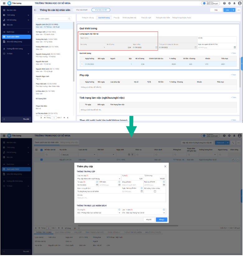 • Nhấn Lưu & gửi thông báo để lưu thông tin quyết định và gửi thông báo đến các đơn vị cấp dưới