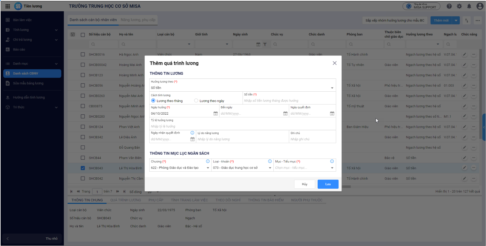 • Nhấn Lưu trong trường hợp anh chị lưu thông tin để lần tới nhập tiếp.