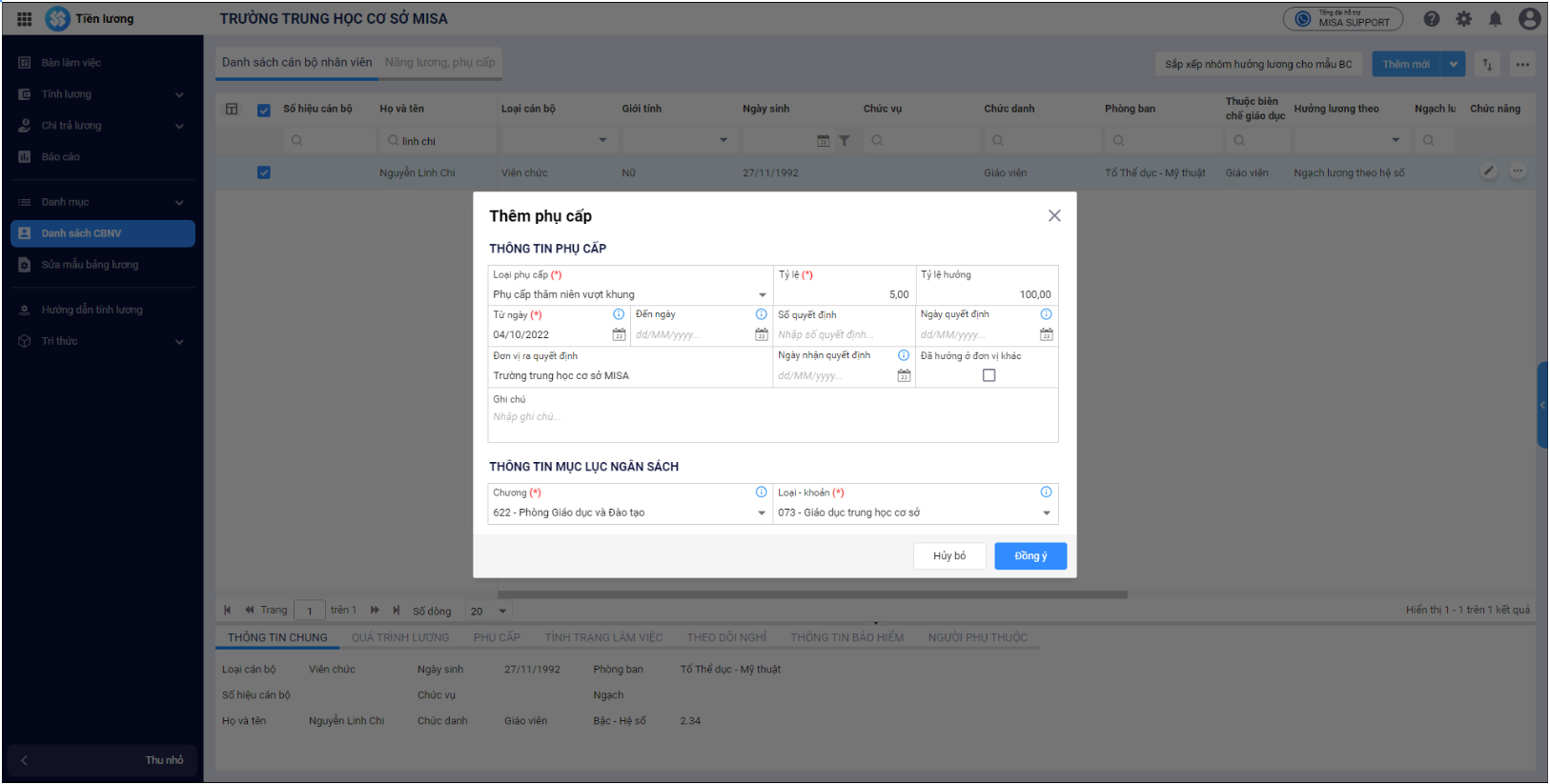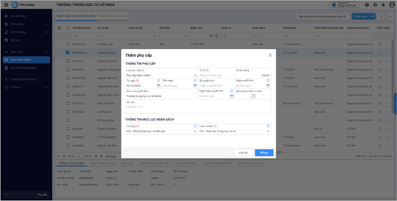 • Nhấn Thêm dòng để nhập thêm các cá nhân được khen thưởng trong quyết định. Cuối cùng, cuối cùng nhấn Đồng ý để lưu thông tin cá nhân