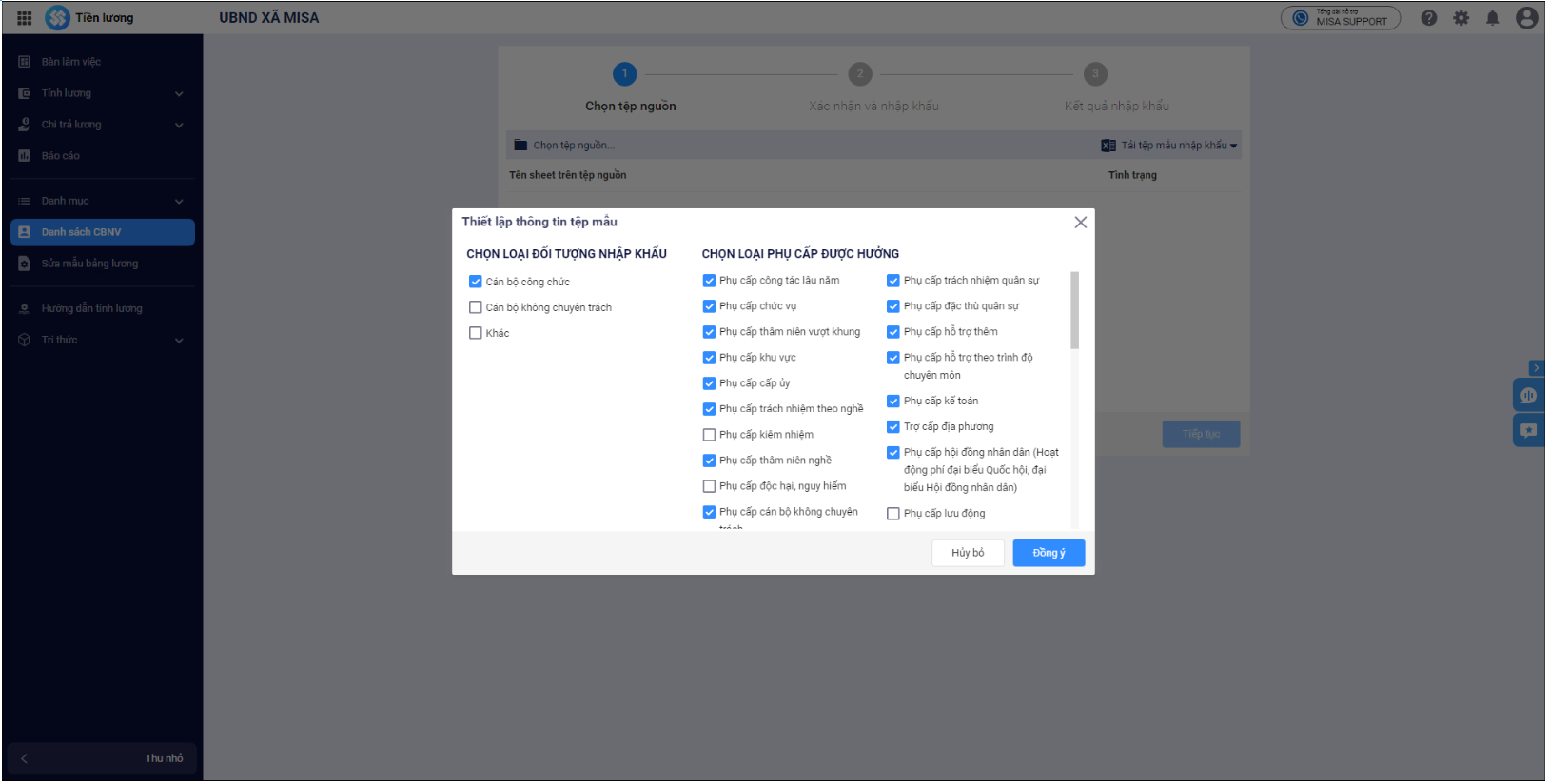 • Chọn Nhập khẩu cập nhật, nhấn Tải tệp mẫu để tải tệp dữ liệu mẫu của chương trình.