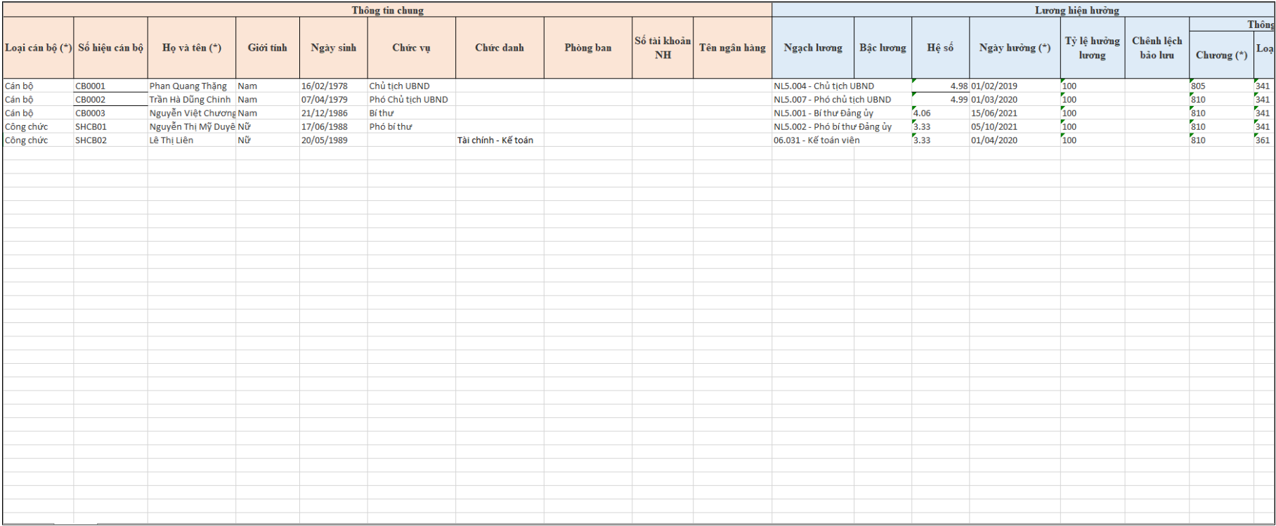 • Khai báo các trường thông tin tương tự với các cá nhân, tập thể của đơn vị cần quản lý tại sheet Danhsach-canhan, Danhsach-tapthe tương ứng.