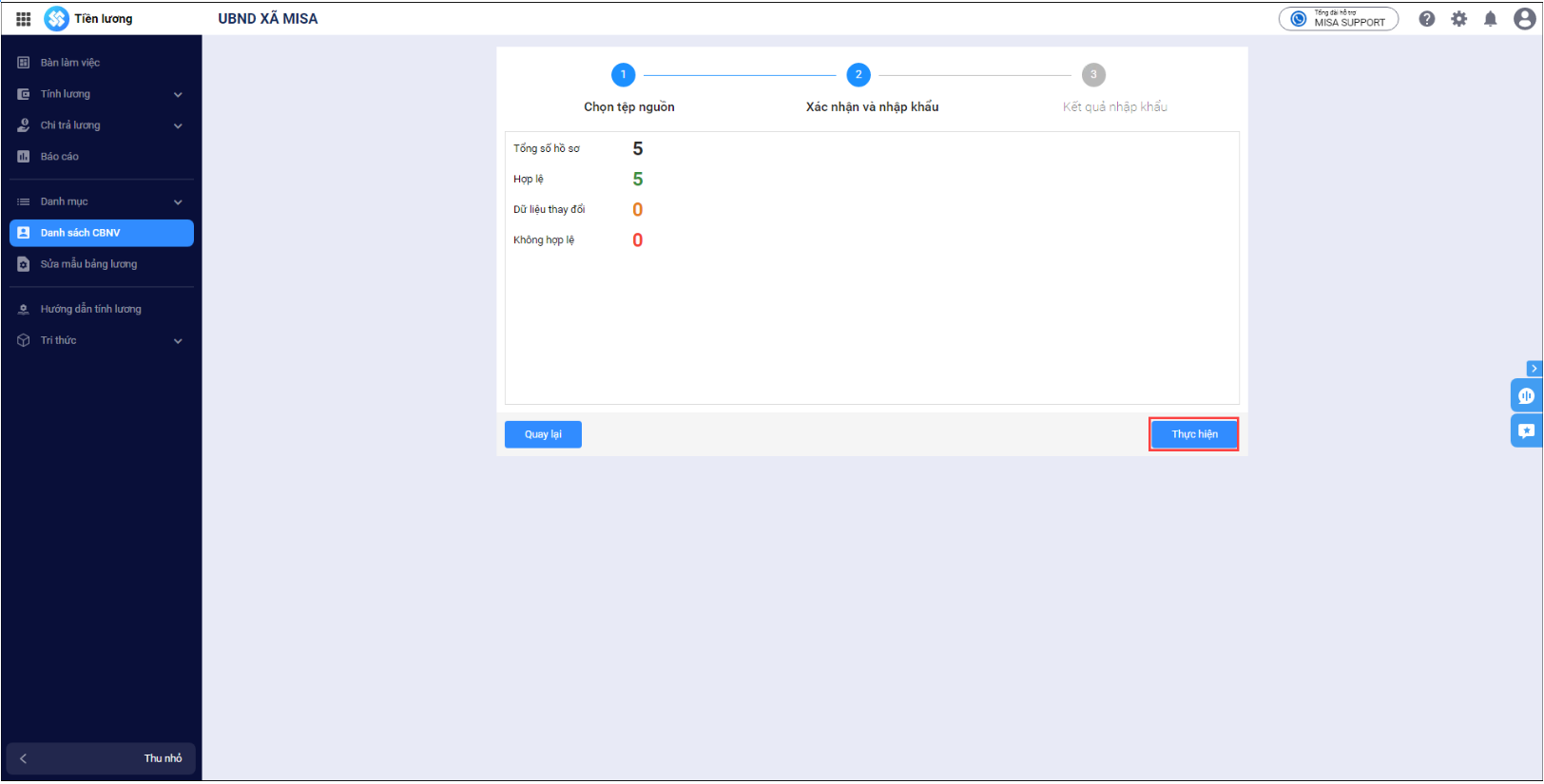 • Nhấn Nhập khẩu để tải bản ghi hợp lệ lên chương trình.