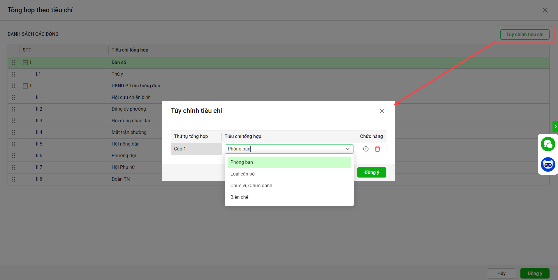 - Anh/chị có thể nhấn biểu tượng dấu cộng (+) để thêm cấp tùy chỉnh tiêu chí. Sau khi hoàn thành chọn Đồng ý.