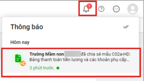 - Lúc này đơn vị nhận báo cáo được chia sẻ sẽ nhận được thông báo