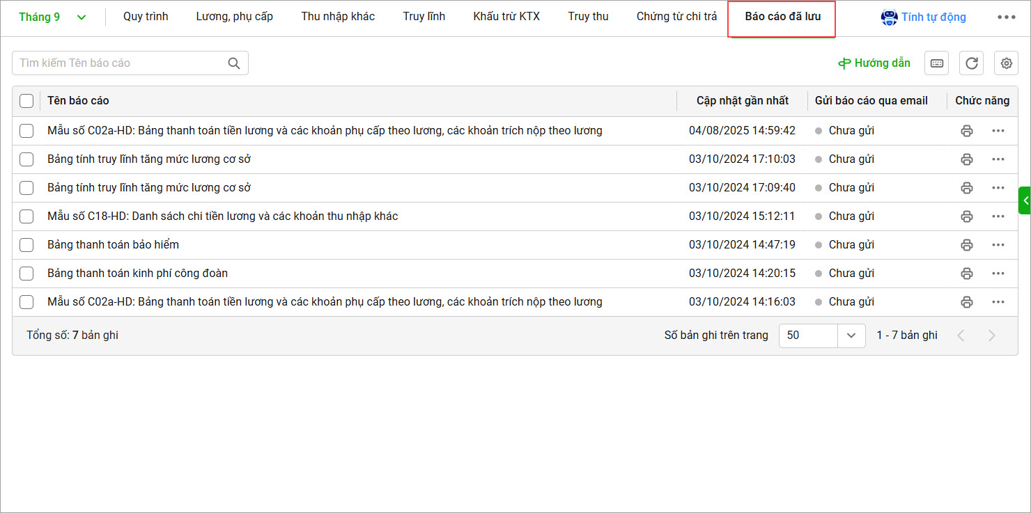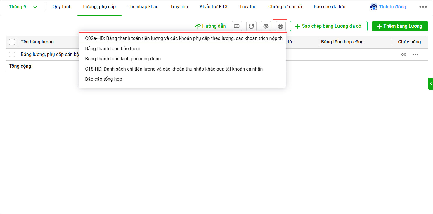 Sau khi lập xong các bảng tính phát sinh trong kỳ lương (ví dụ: bảng lương, phụ cấp, bảng thu nhập khác, bảng khấu trừ không thường xuyên,…), kế toán có thể lập báo cáo để kèm theo bộ Hồ sơ chi trả lương, nộp lên cấp trên hoặc lưu trữ lại số liệu tại đơn vị