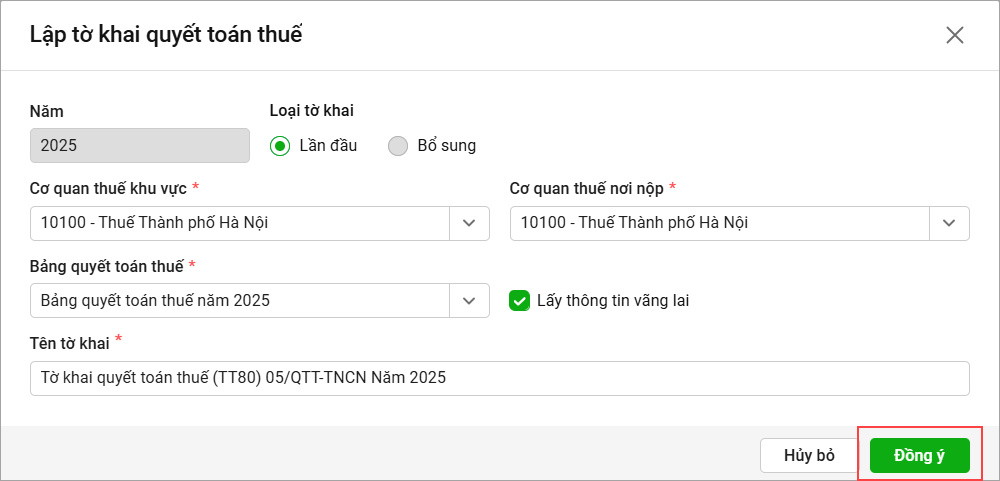 1. Sau khi lập bảng quyết toán thuế, anh/chị có thể lập luôn tờ khai thuế