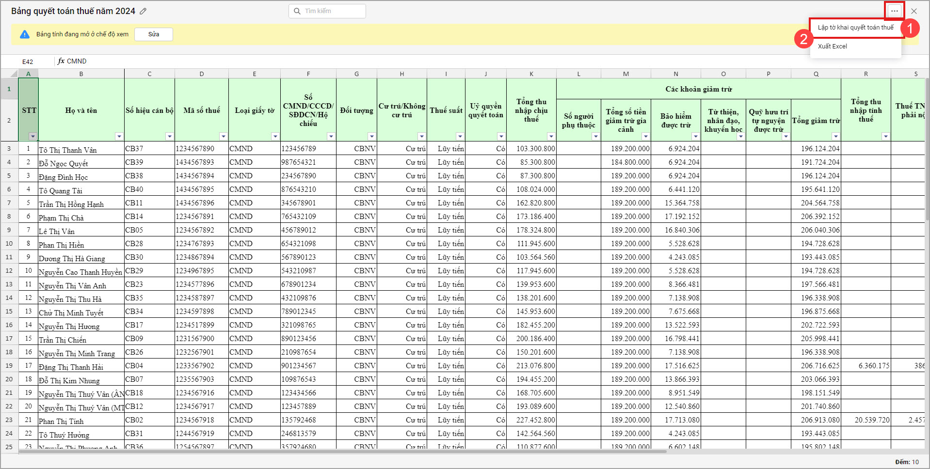 2.1. Lập bảng quyết toán thuế